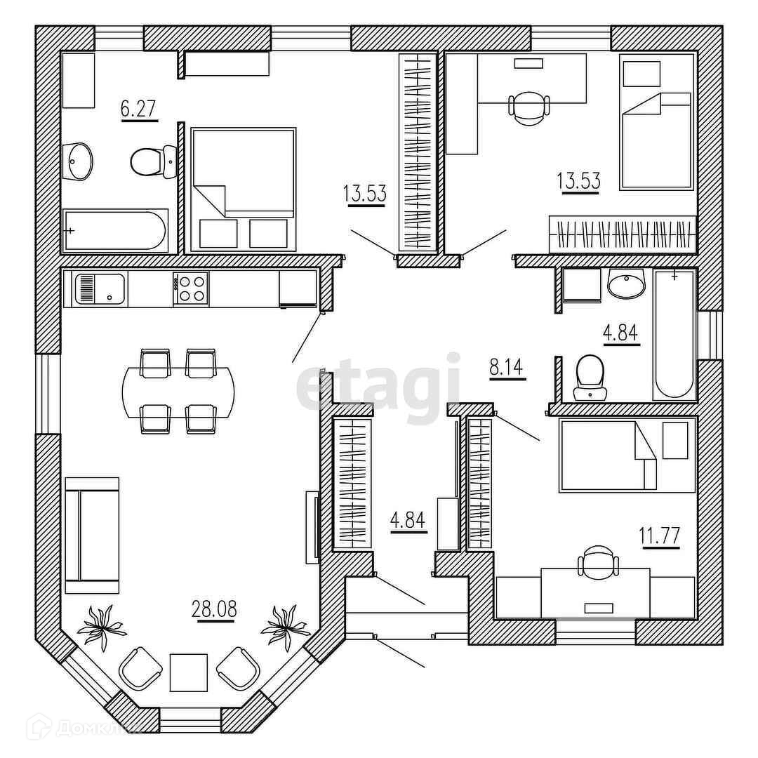 Общая площадь 95 м2