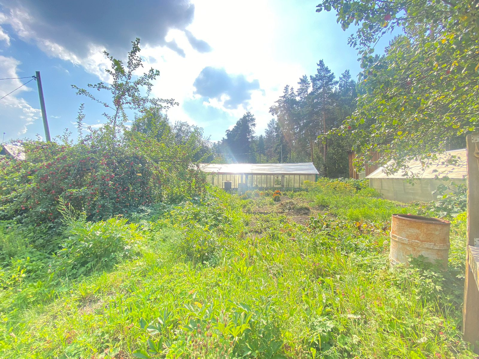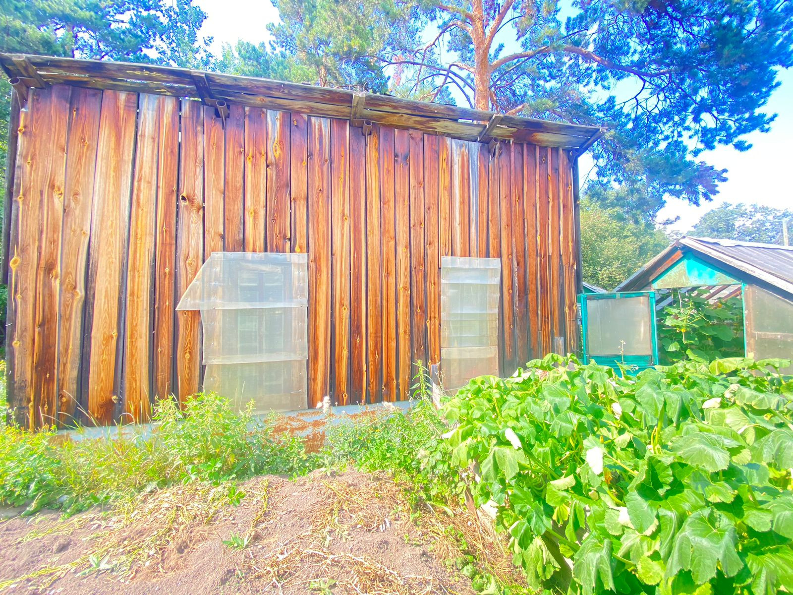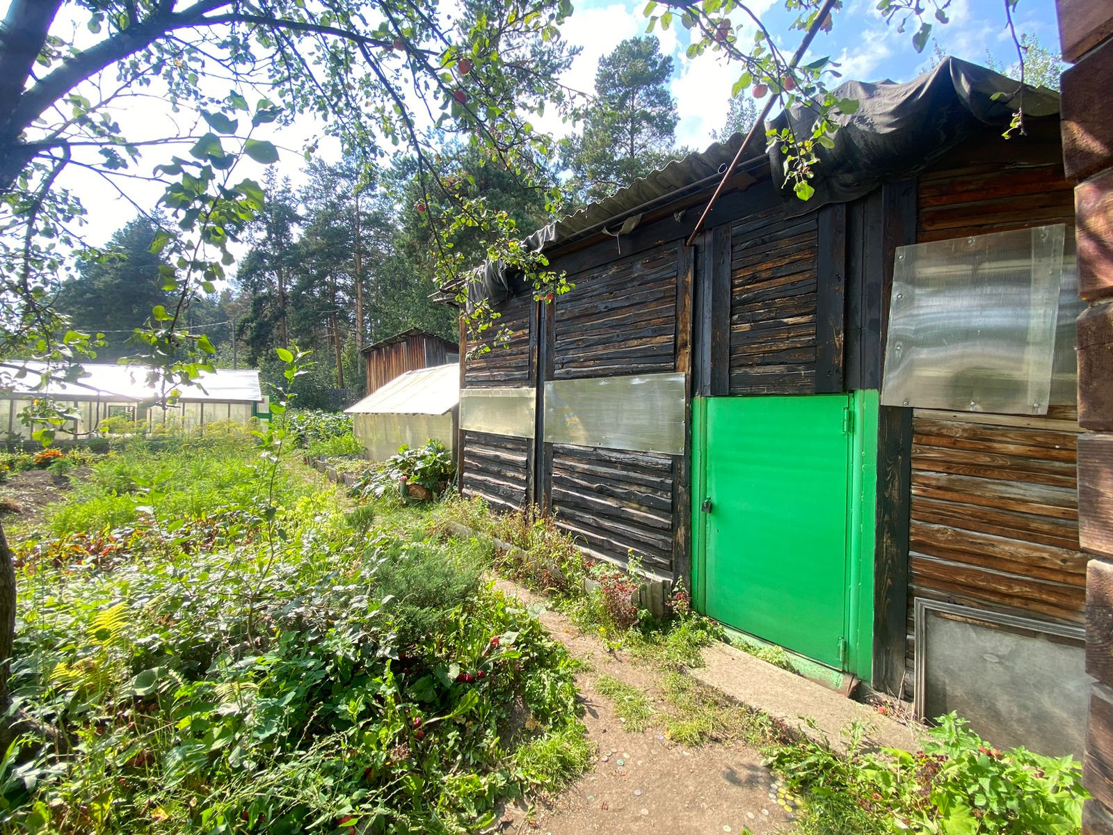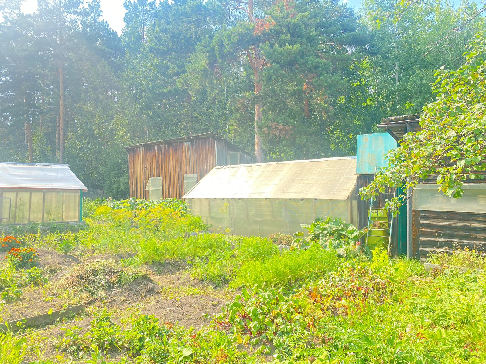 Две большие теплицы.