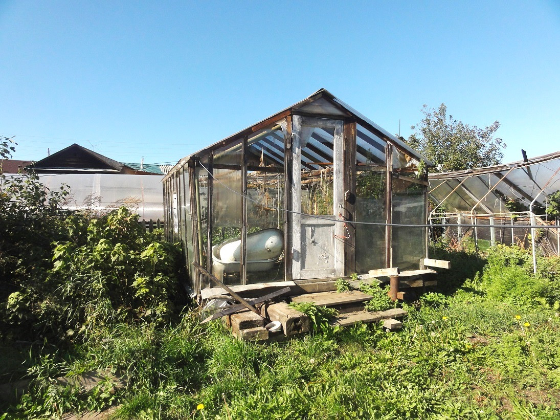 На участке есть баня, теплица, небольшой гараж, мастерская, надворные постройки для куриц, кроликов и пр.