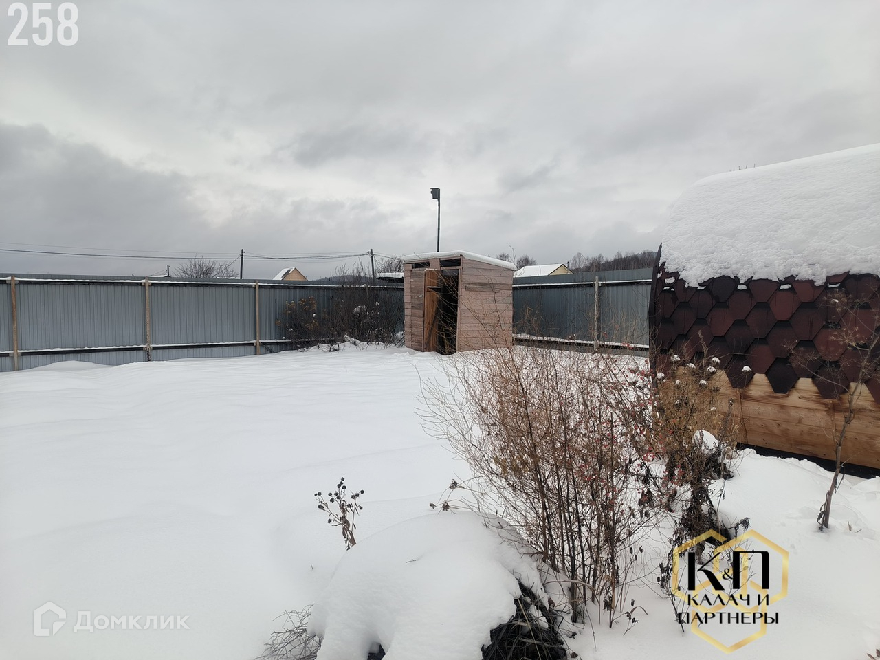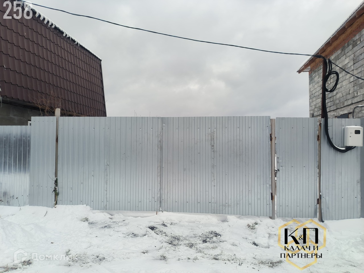Крыша - оцинкованный профлист. Идеально ровный участок 6 соток, окружён высоким забором.