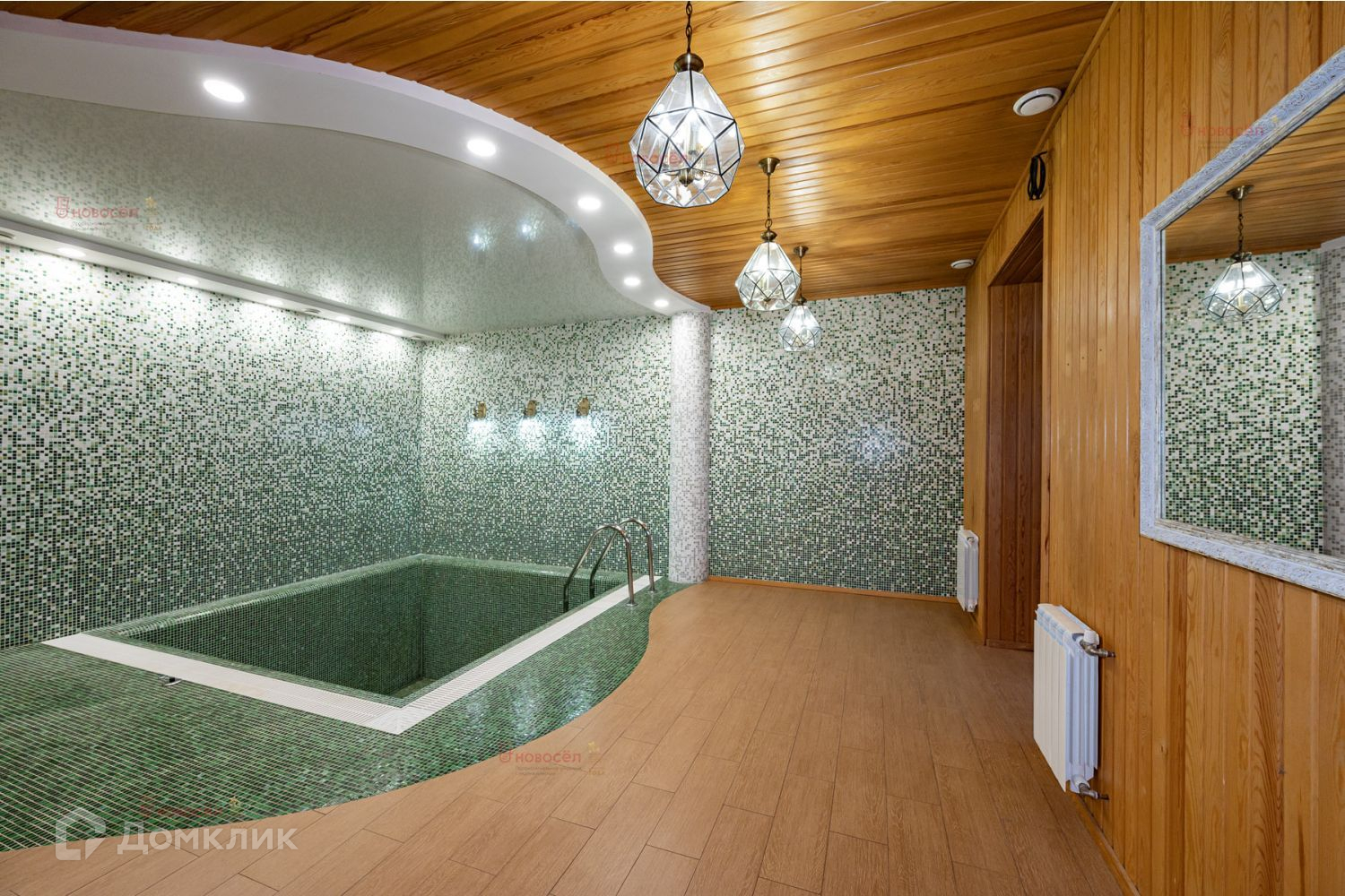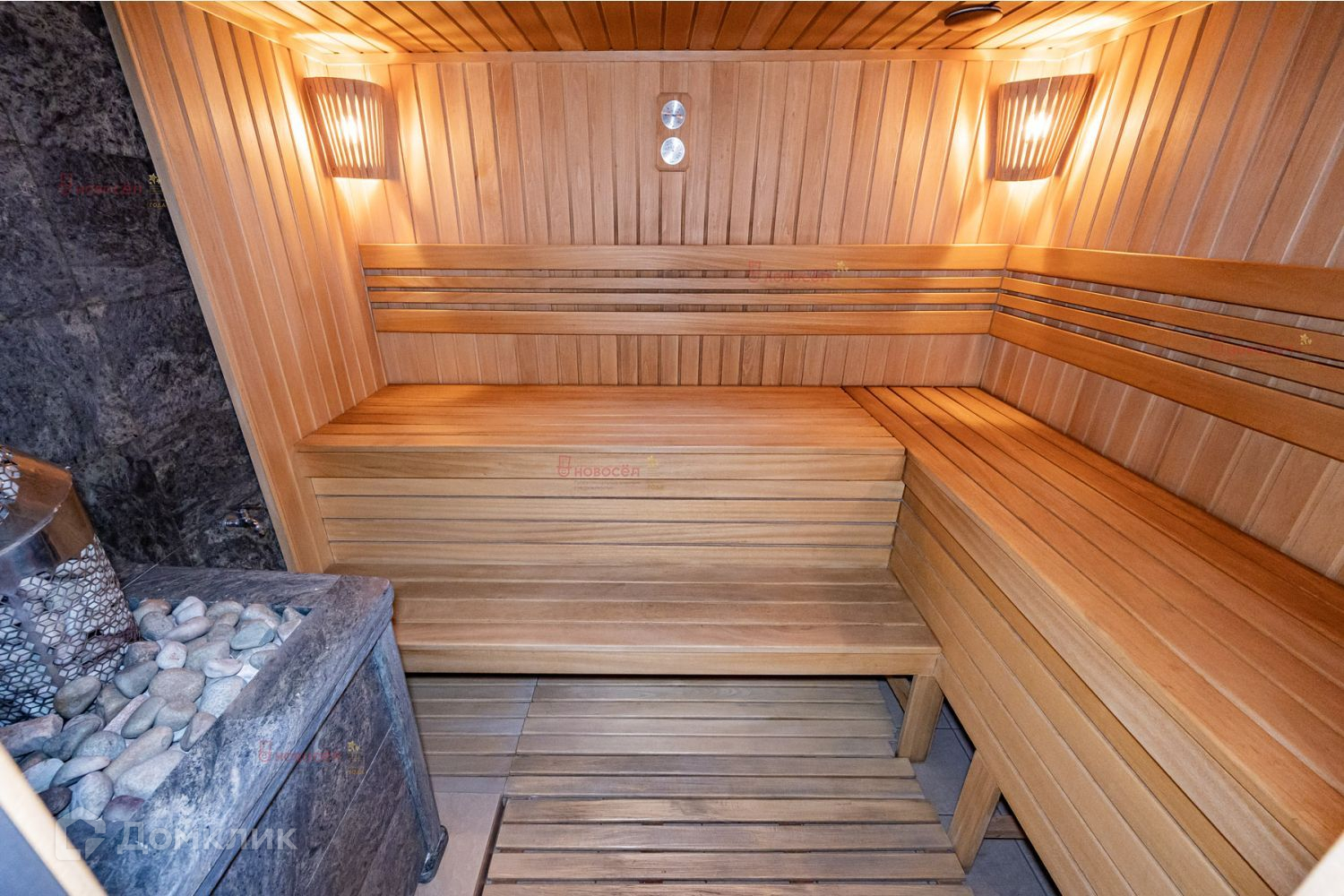 Гостевой дом в два этажа: 1 этаж - гараж, санузел, бассейн, сауна. 2 этаж - 2 гостевых комнаты, санузел.