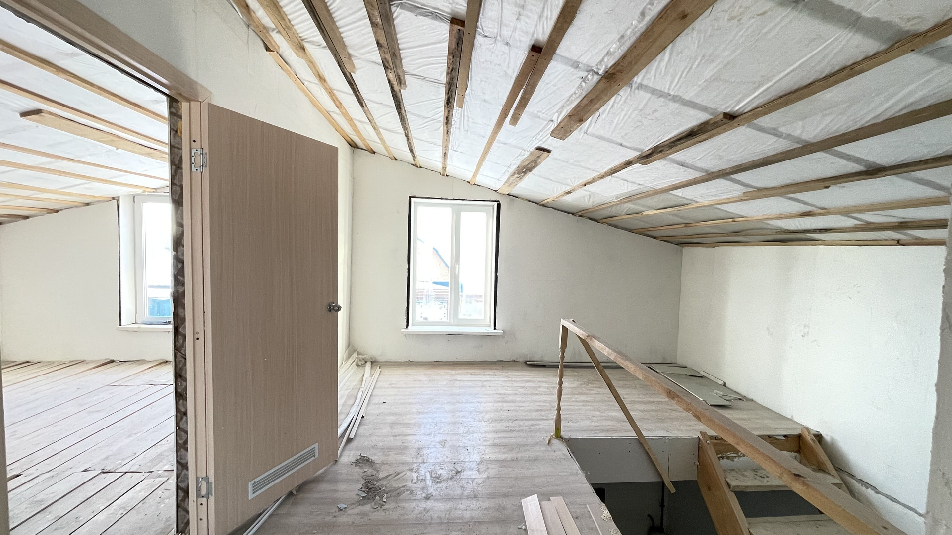 Второй этаж мансардный, три изолированный комнаты,