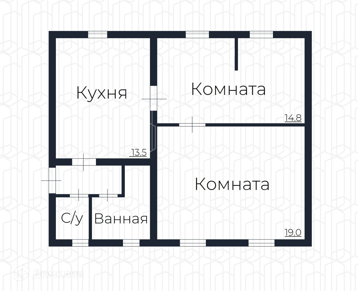 Общая площадь 55.5 м2