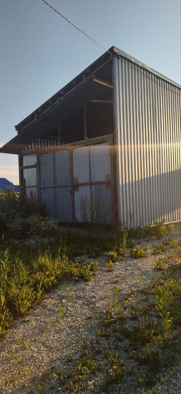 На участке есть большой бокс, состоящий из нескольких частей: 1-ый из профлиста 0,7 мм(нс44) размером 5,7 на 9 метров, высотой 6 метров, по низкой стороне 4,5 метров, широкие ворота высотой 3,2.! 2-ая часть 5*1*9 метров, потолок 3 митра, частично утеплены стены, внутри есть не несущие стены, которые при сносе увеличат площадь помещение. Все вышеперечисленные конструкции стоят на сваях. В данном объекте никто не проживает, ключи в день сделки.