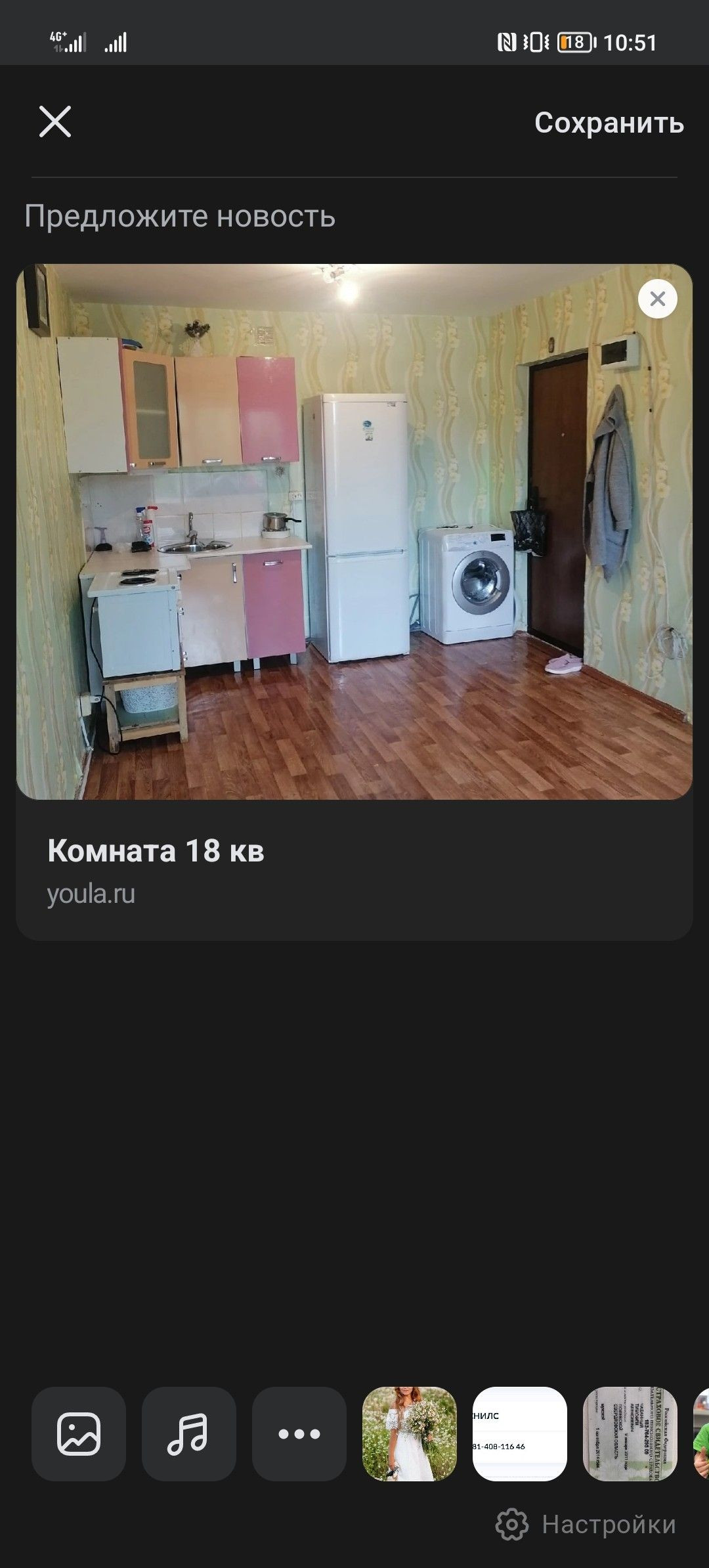 Общая площадь 18 м2