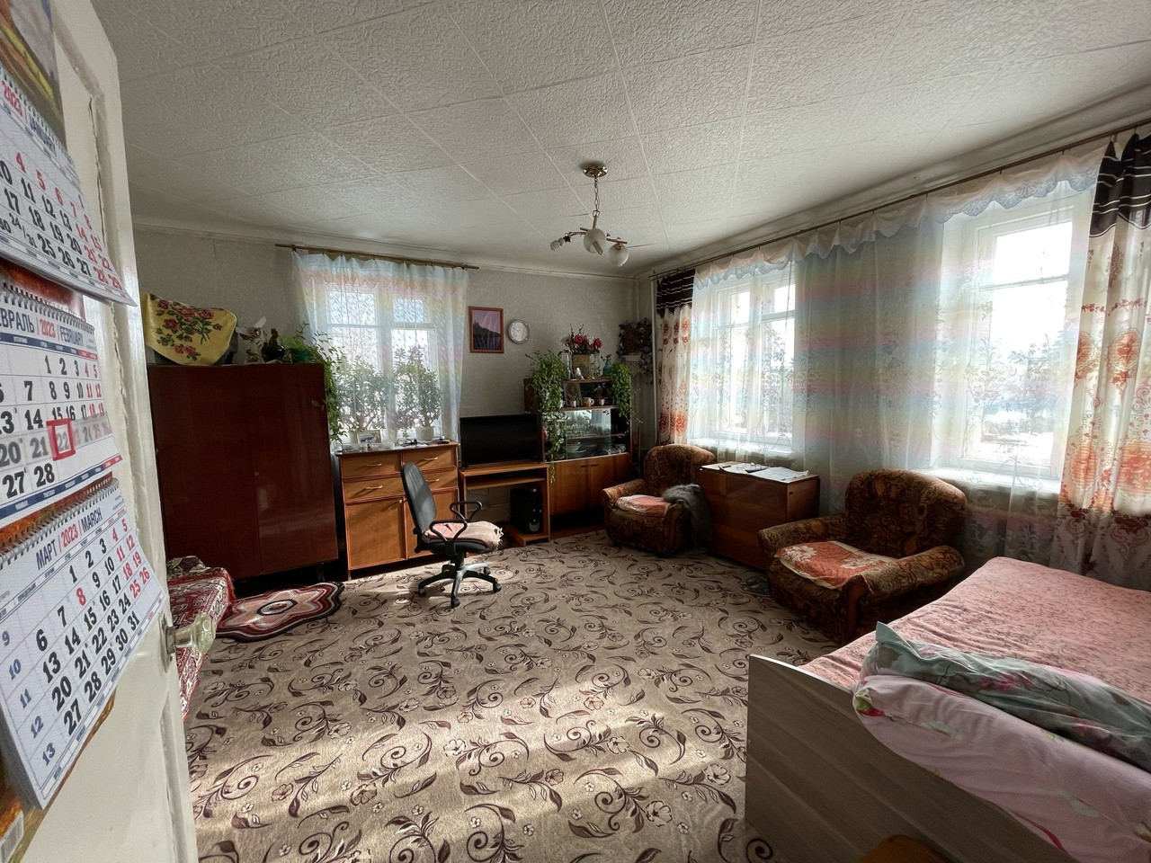 Квартира очень теплая, светлая, площадь комнаты 21 кв.м., деревянные окна, сейф дверь, подъезд чистый, соседи все порядочные, семейные, под окном имеется небольшой участок.