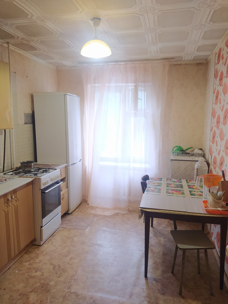 Квартира подготовлена к ремонту и уже освобождена. Она находится в удобном месте: рядом детские сады, школа, остановка общественного транспорта, магазины, парк и лес. Из окон открывается вид на лес. Соседи дружелюбные.