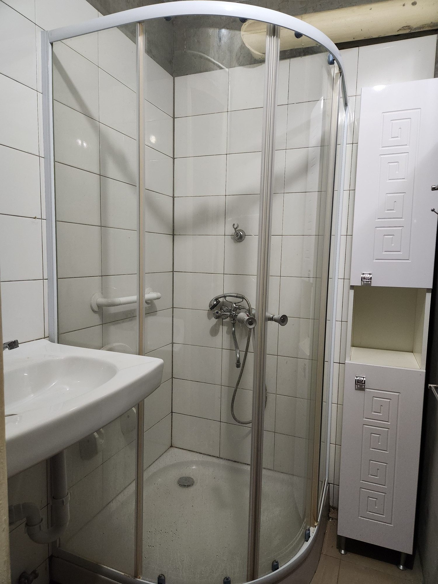 Ванная комната установлена душевая кабинка (ремонт сделан в 2022, но осталилось покрасить оштукатуренные стены), раковина специальная с установкой на стиральную машинку, поэтому место под стиралку отдельно на кухне выделять не нужно, пенал в ванной остаётся (новый).