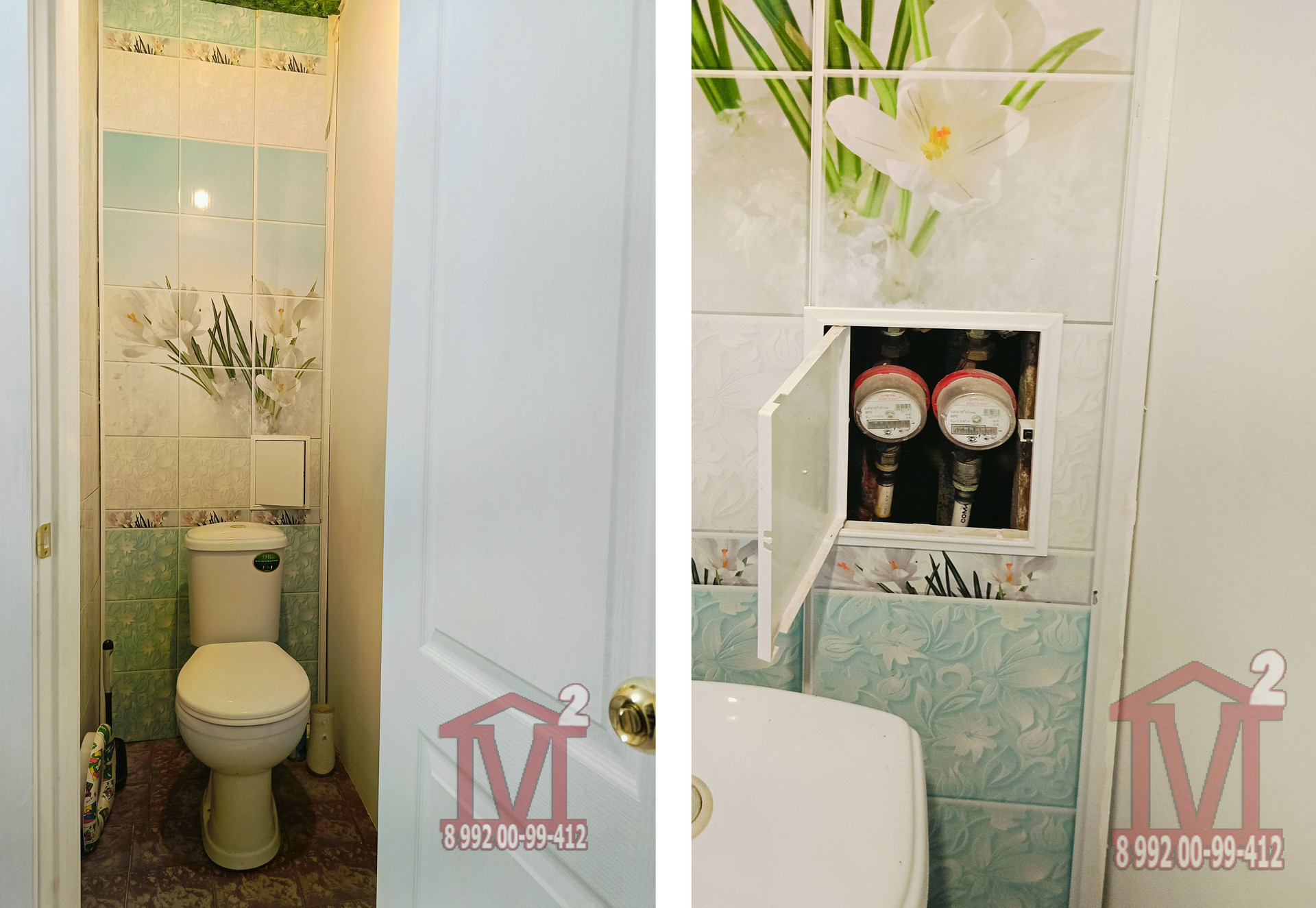 Туалет и ванна раздельные. Облицованы плиткой.
