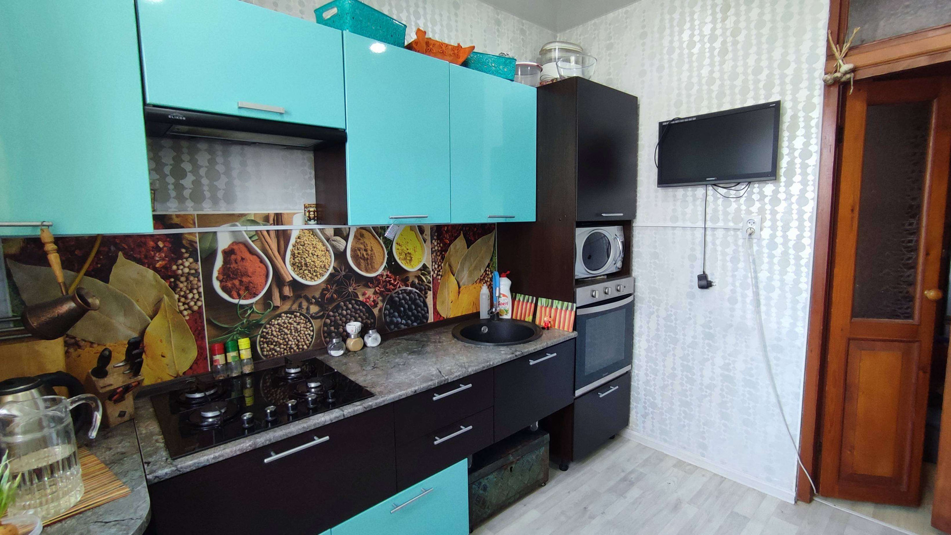 Кухонный гарнитур, газовая плита.