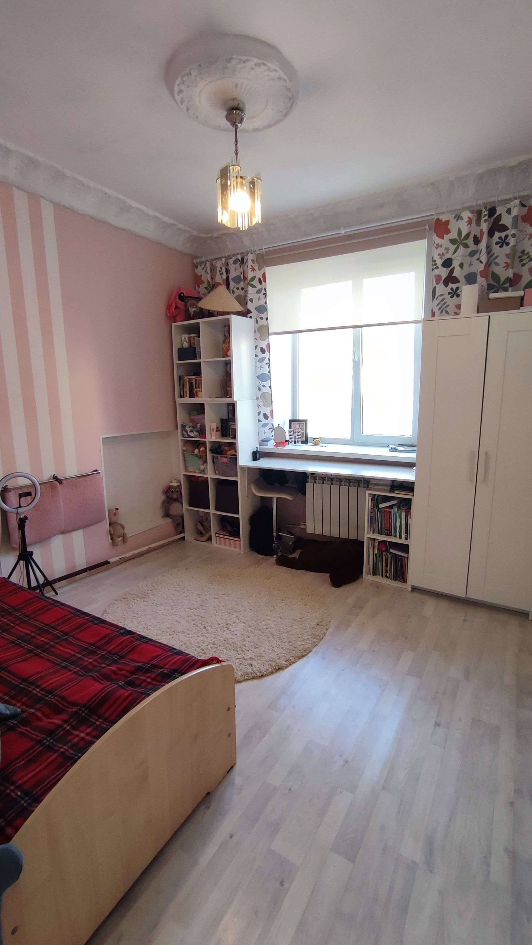 высокие потолки, просторные, большие комнаты правильной формы.