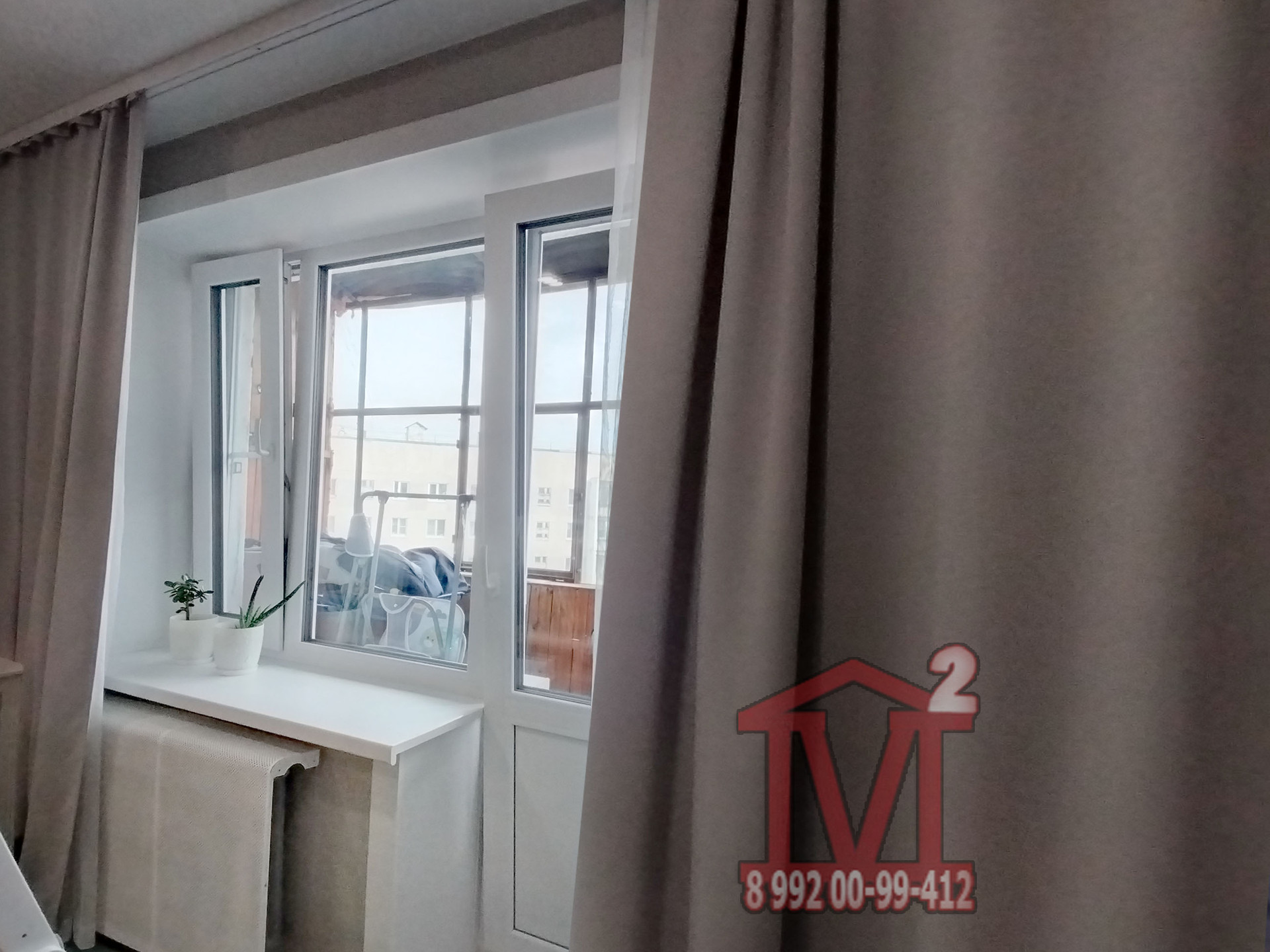 * Большой, застекленный балкон