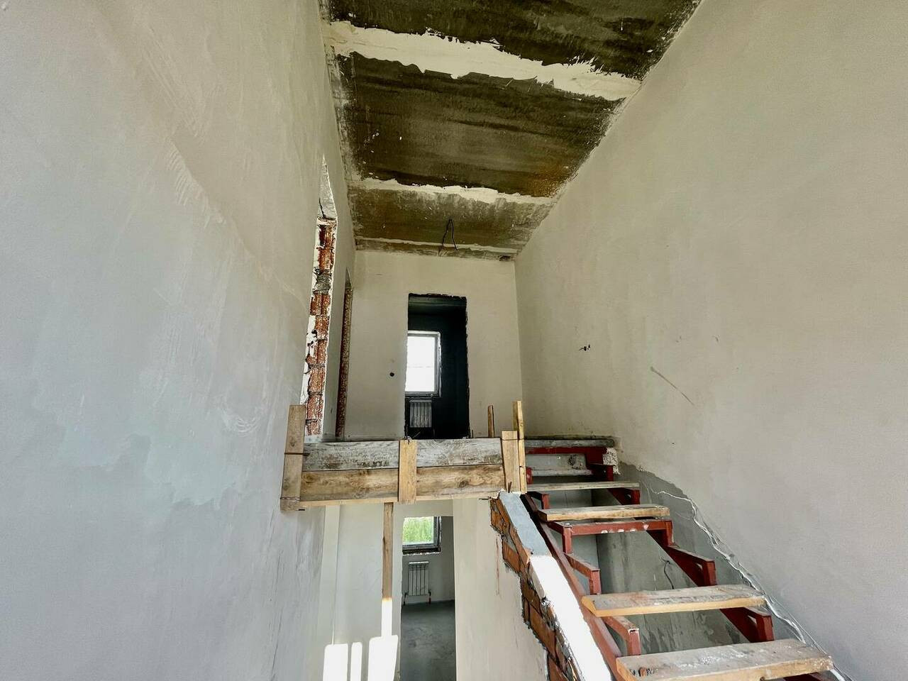 Дом возведён из твинблока. Перегородки в доме: кирпичные и силикатные Планировка дома (изображена на плане) На 1 этаже располагается: терраса, котельная, прихожая, холл, санузел, лестничная клетка и кухня-гостиная. На 2 этаже: холл, санузел, 2 спальных комнаты и шикарная лоджия.