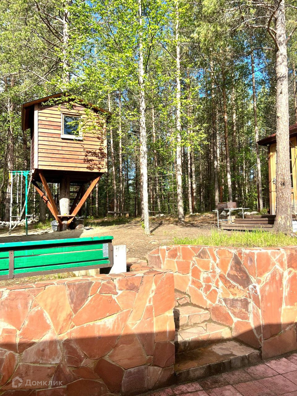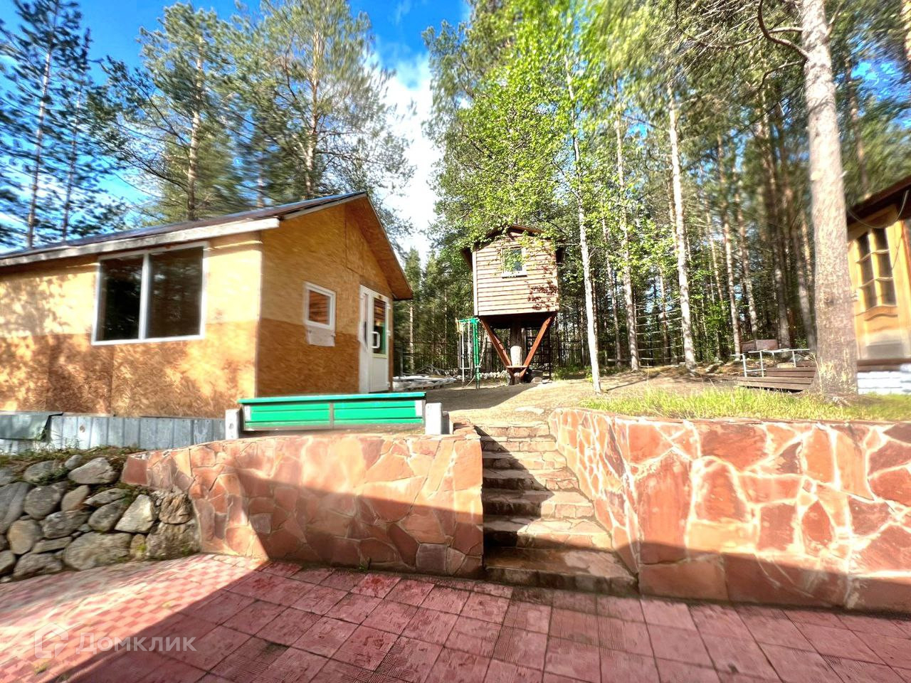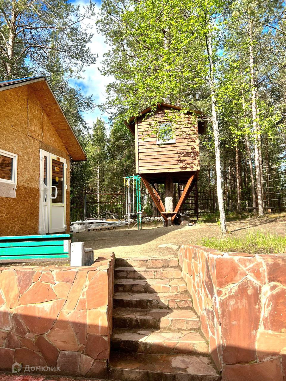 Территория вокруг дома огорожена металлическим забором. На территории сделан ландшафтный дизайн, высажен газон. В стоимость входит расположенные на территории дома баня с парной, помывочной и комнатой отдыха. Хозяйственной постройкой 16 кв.м.. Для детей сделан дом на дереве в который проведен свет, есть кровать и столик. Летняя беседка с мангалом.