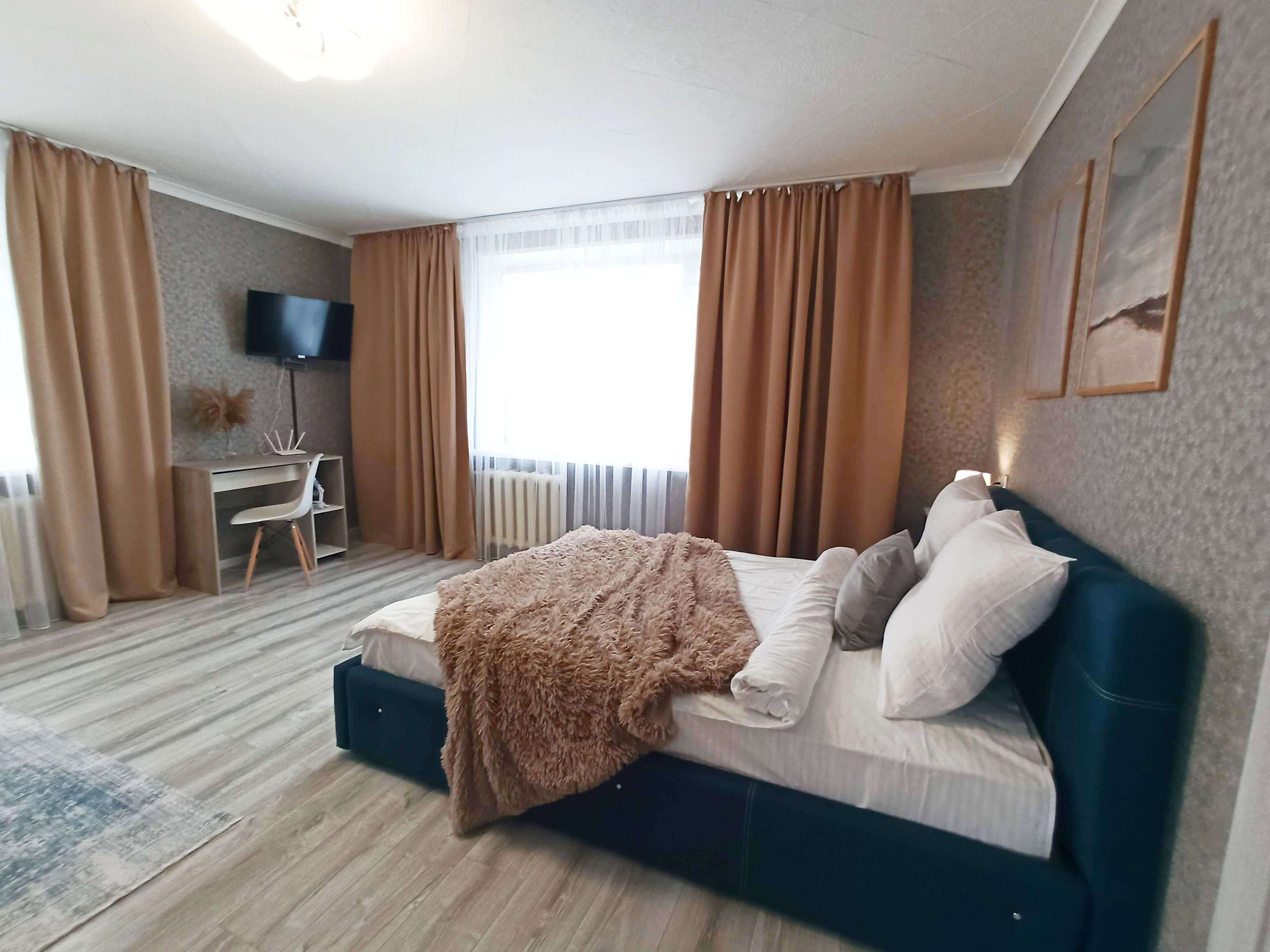 Уютная, очень теплая однокомнатная квартира. С большими окнами на солнечную сторону с видом на главную достопримечательность города "Стелла"