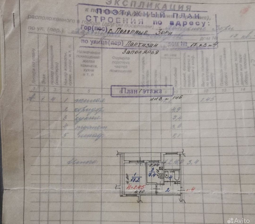 1-комнатная квартира, 33.2 м2, этаж 1 / 9, на продажу в Полярных Зорях, улица Партизан Заполярья, 17