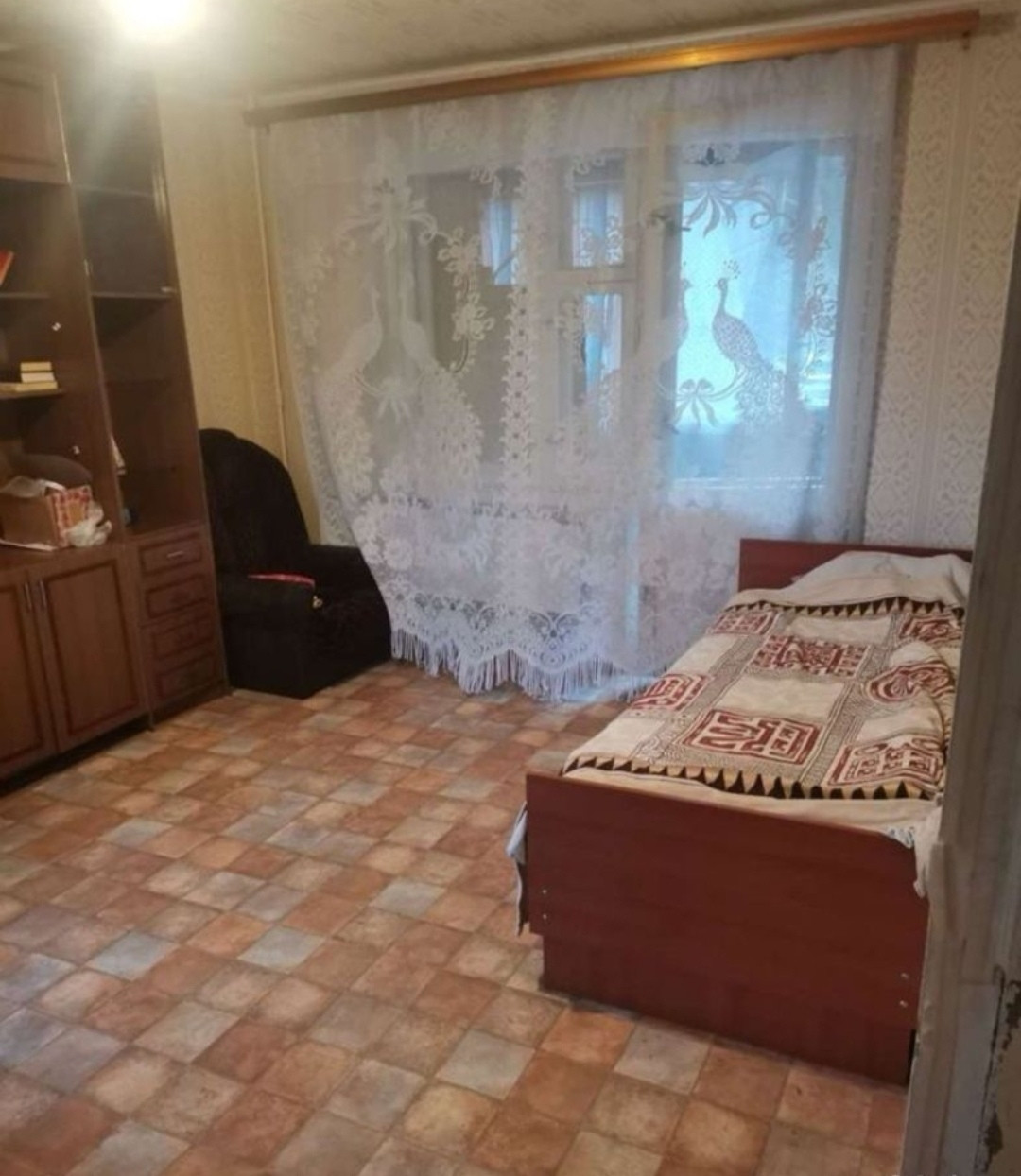 Жилая площадь- 17.2 кв. м., кухня-7.4 кв. м., квартира находится на первом этаже 9-этажного дома, в доме есть мусоропровод. Чистый подъезд с домофоном. Окна квартиры выходят на две стороны. Отличный вид  из окон на зелёный тихий двор.