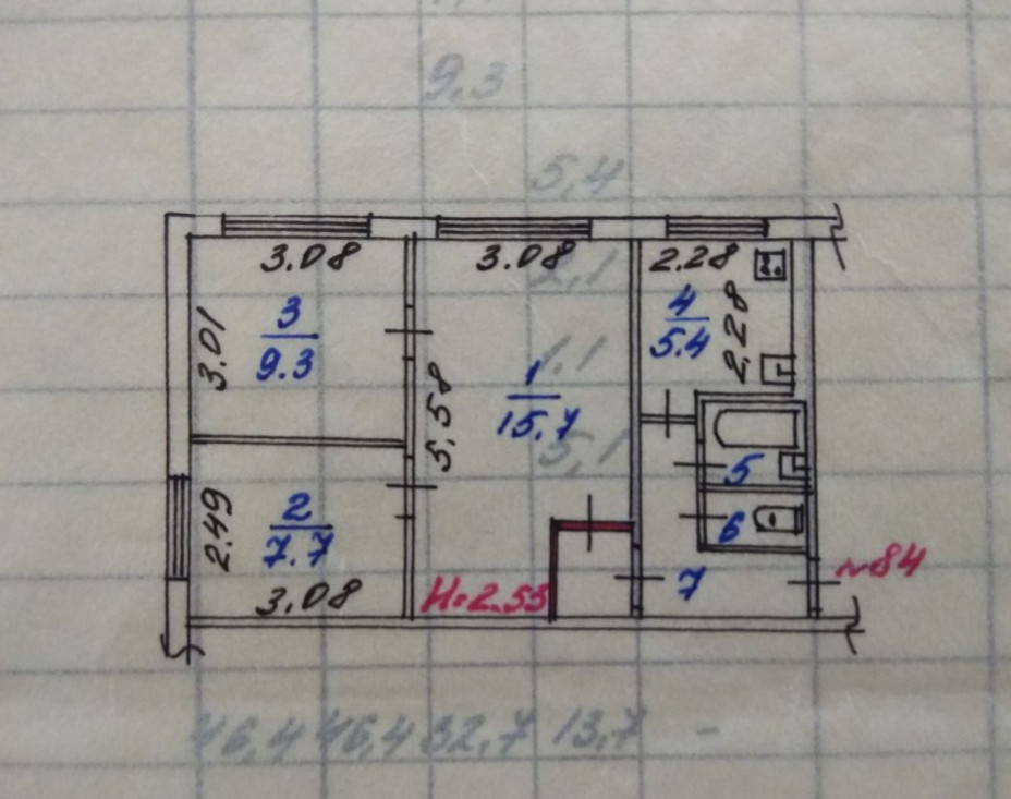 Общая площадь 46.4 м2