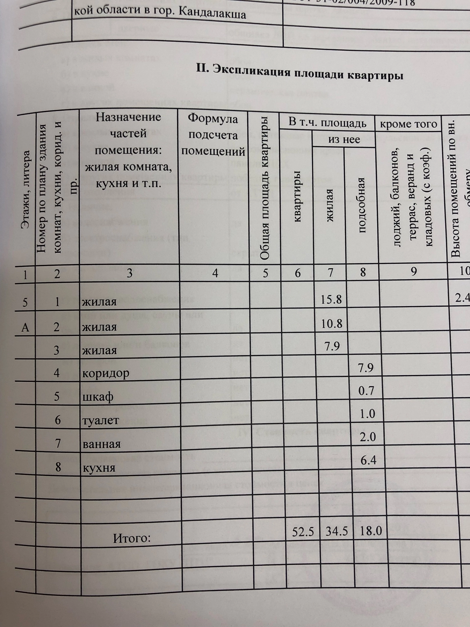 Общая площадь 52.5 м2