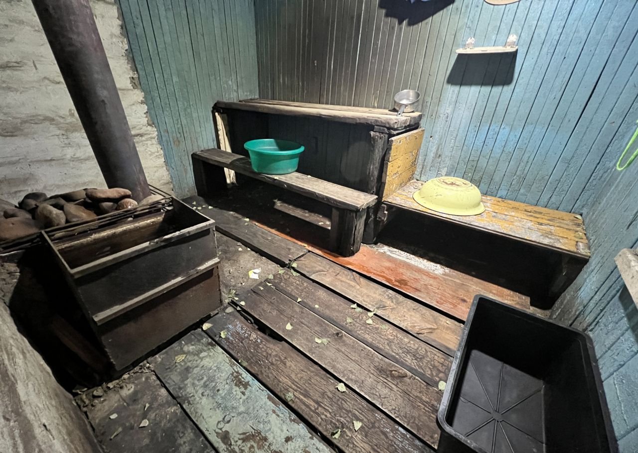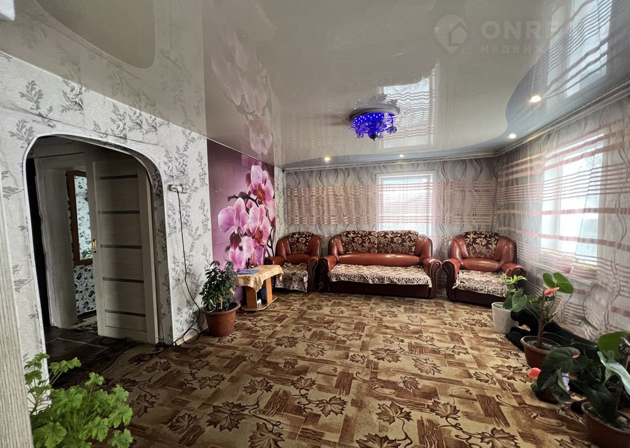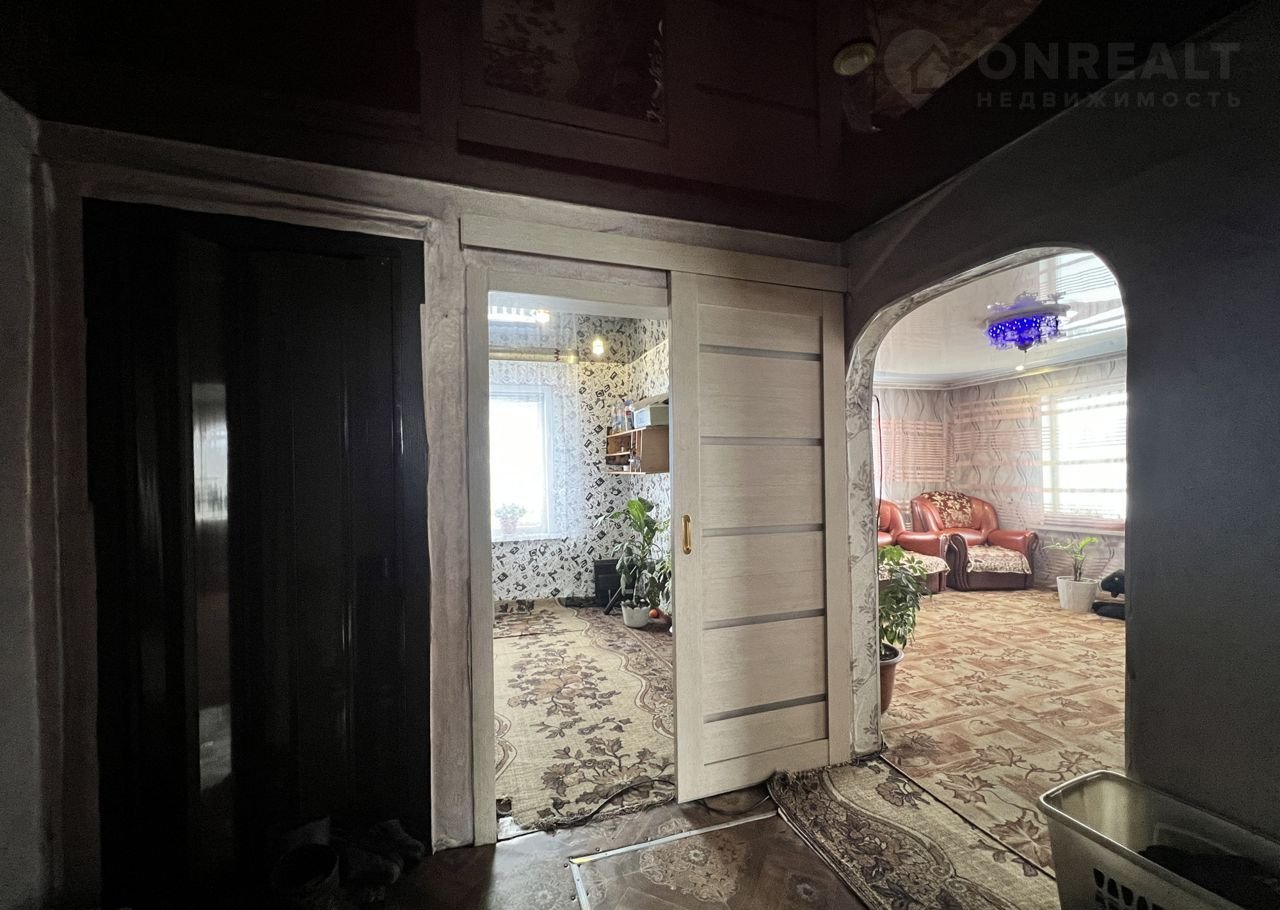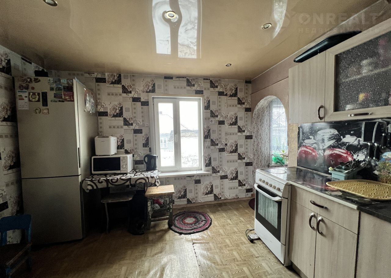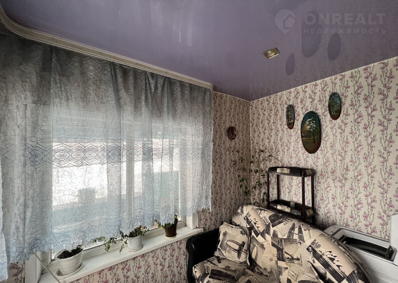 • S=50,1 м², кухня - 8 м². Бревенчатый дом, 1962 года постройки. Крыша - металлочерепица. Дом обшит сайдингом. Новый высокий фундамент. Теплый и сухой. Косметический ремонт. Окна ПВХ. Полы - линолеум. Потолки высокие 2,8 м - натяжные с точечными светильниками. Стены ровные. Отопление от печи.