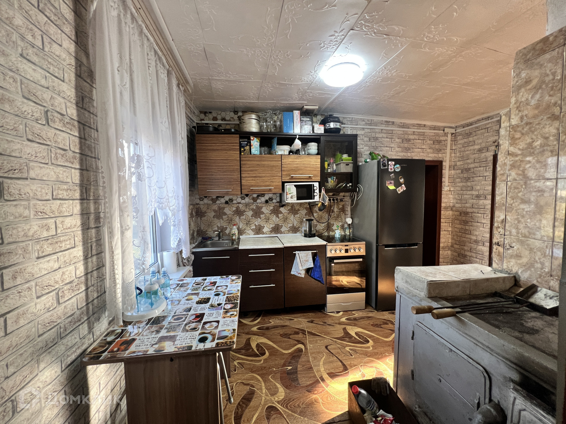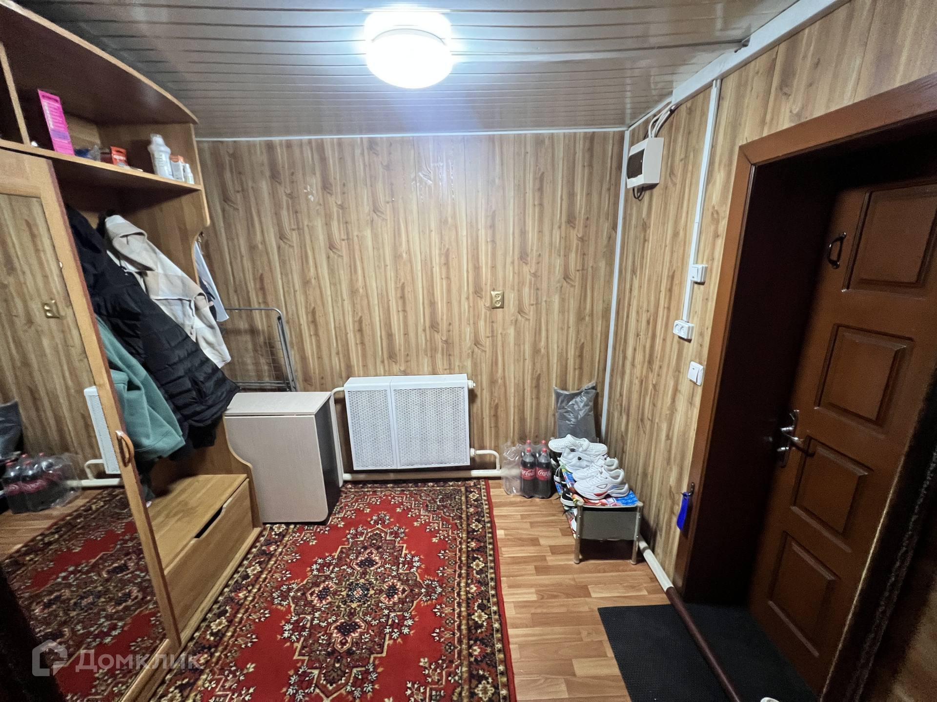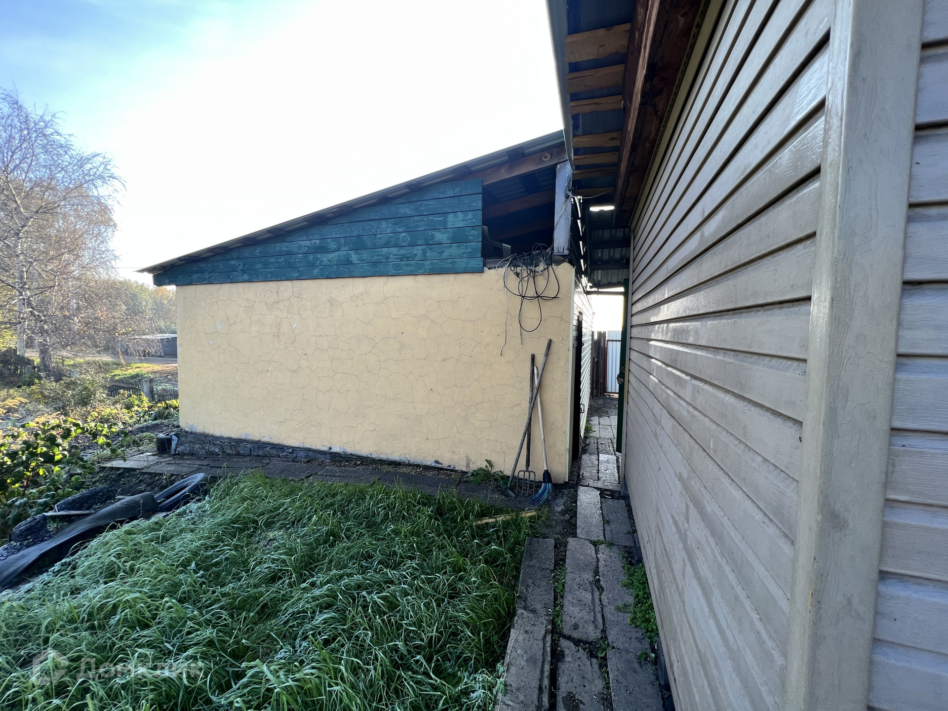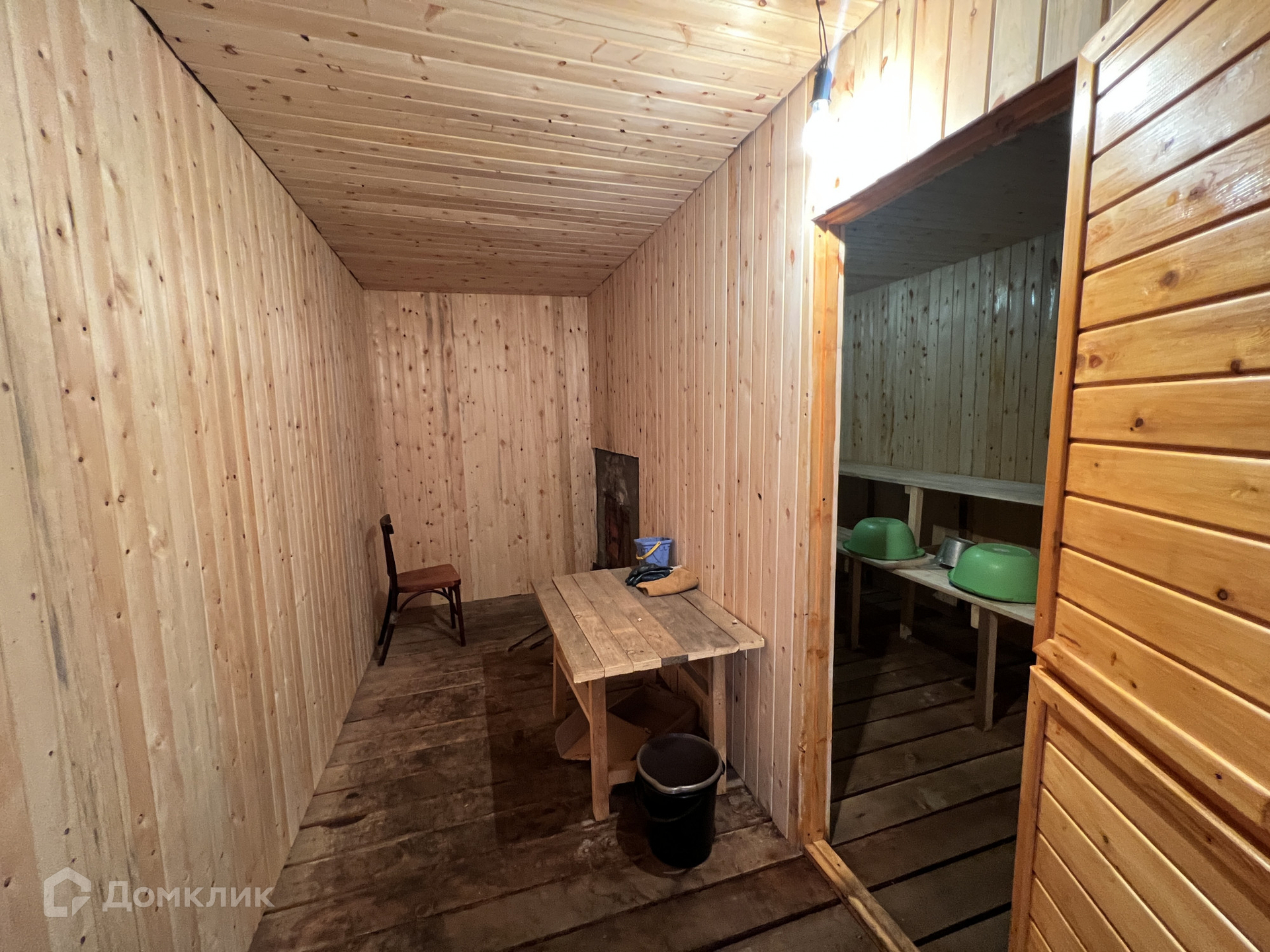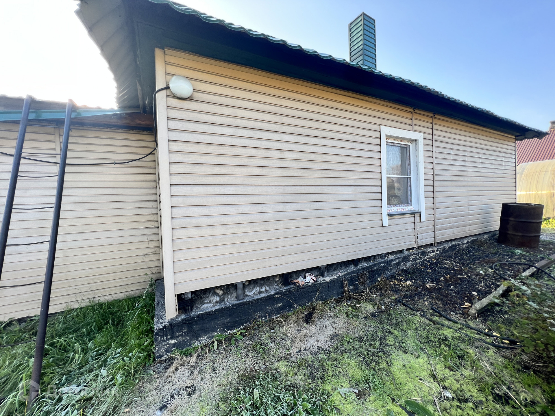 • S=50,1 м², кухня - 9 м². Бревенчатый дом, 1960 года постройки. Снаружи обшит сайдингом. Крыша - металлочерепица. Косметический ремонт. Новая электропроводка. Окна ПВХ. Полы - линолеум. Потолки (высокие) - натяжные. Совмещенный санузел городского типа в доме - новая ванная, установлен бойлер на 80 л. Отопление водяное от печи. Входная дверь металлическая. При входе теплая прихожая. Установлено видеонаблюдение.