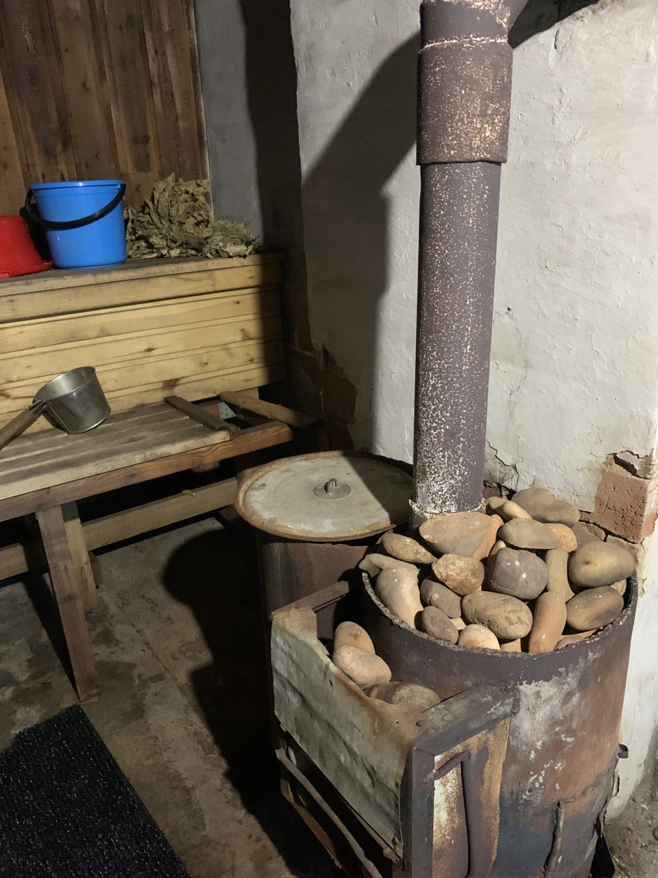 Отопление от котла длительного горения, котел отдельно, выход через крытую веранду.