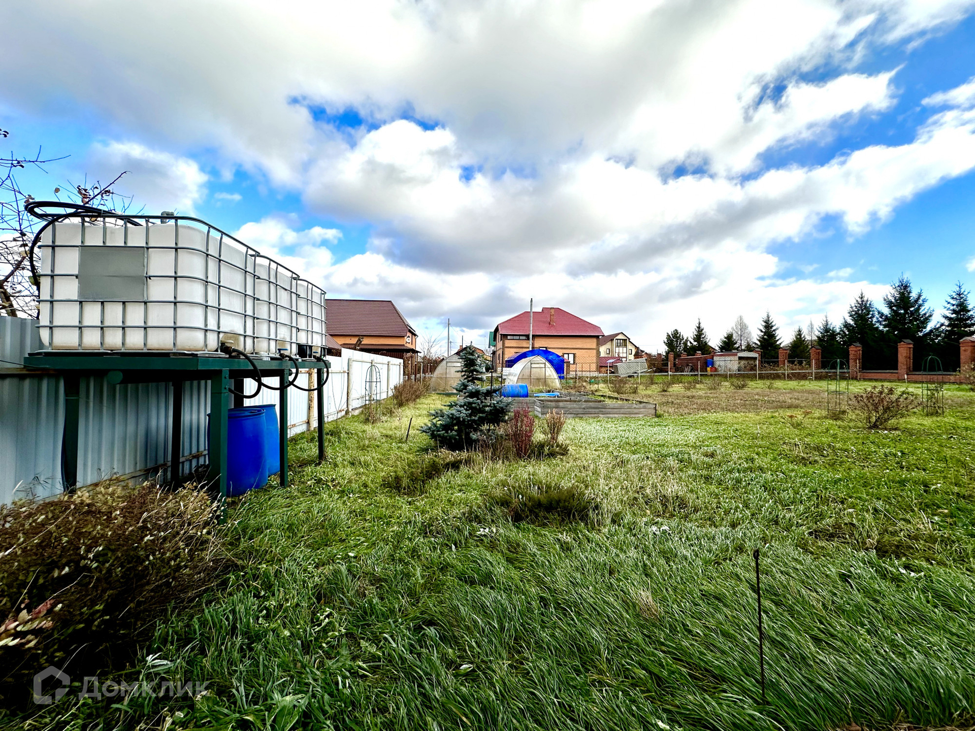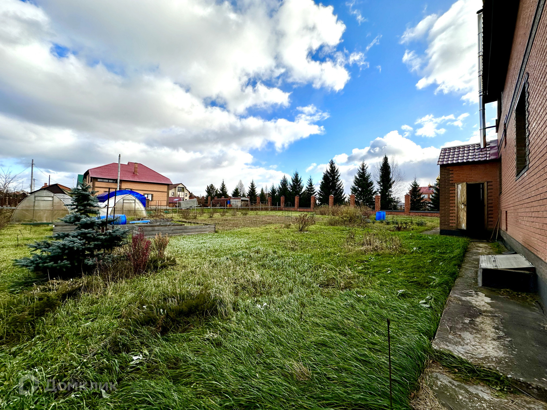 Расположен на земельном участке 16 соток (земля узаконена ИЖС), на котором разбит сад и поставлены две капитальные теплицы по 6 метров.