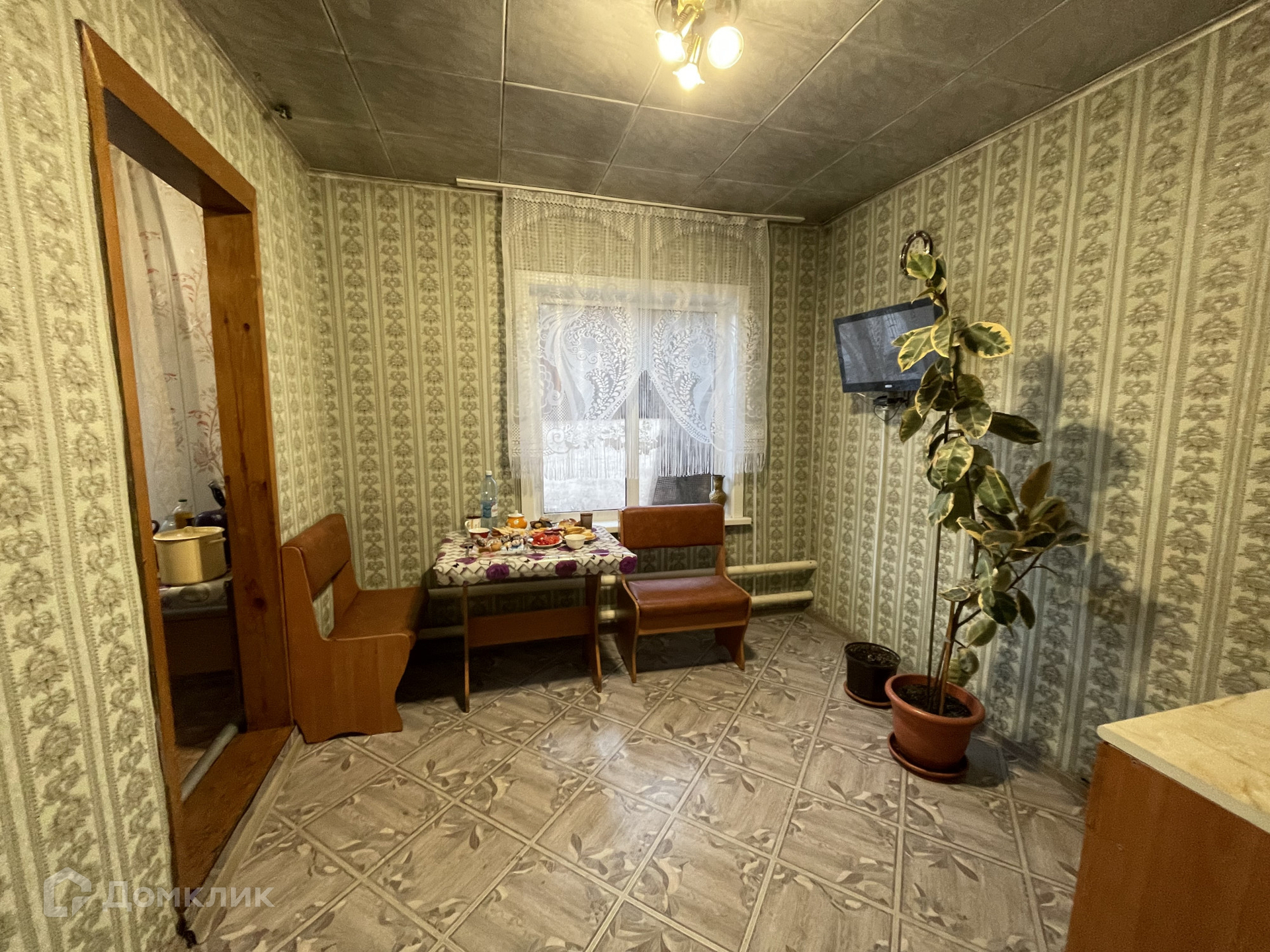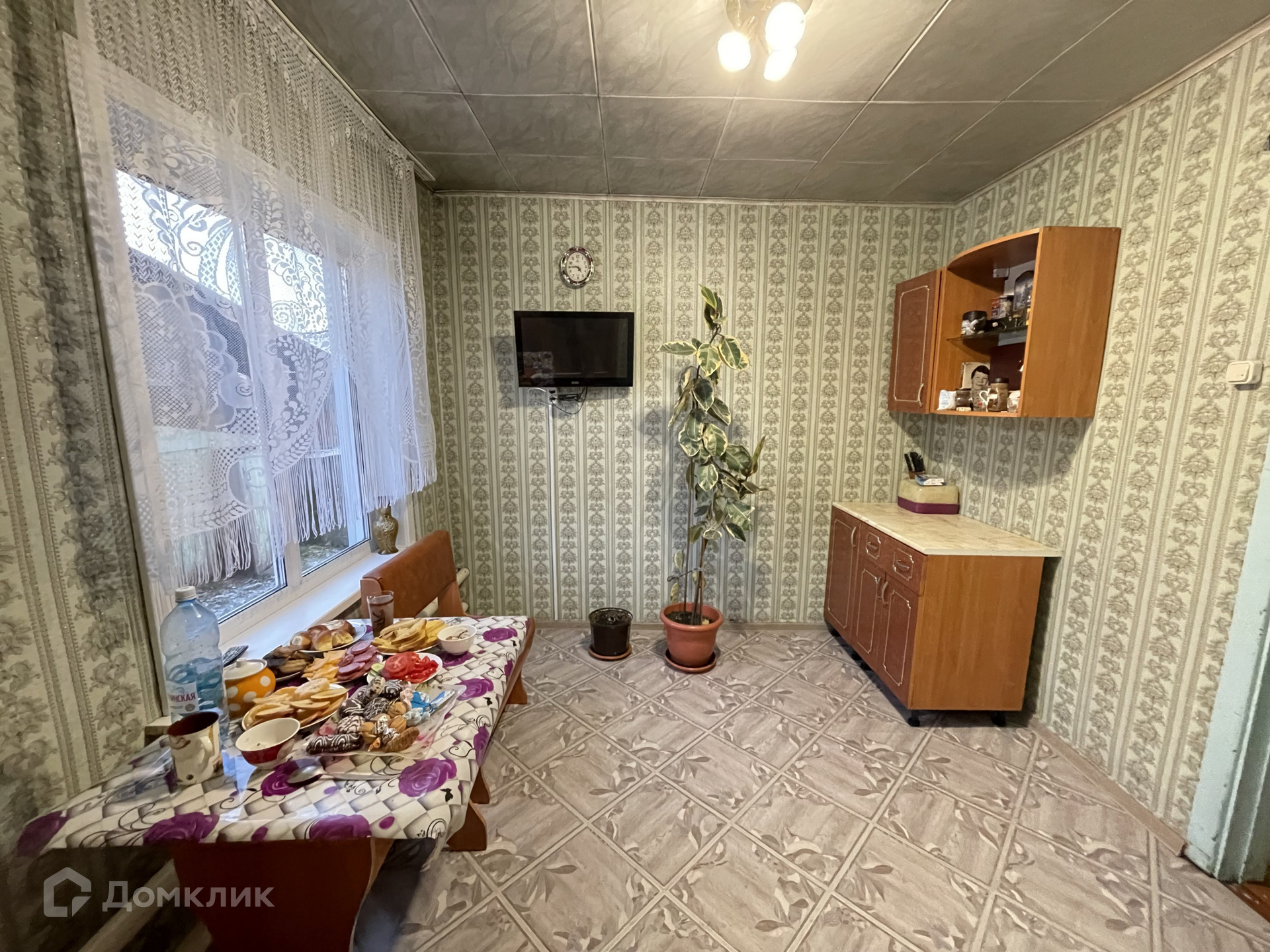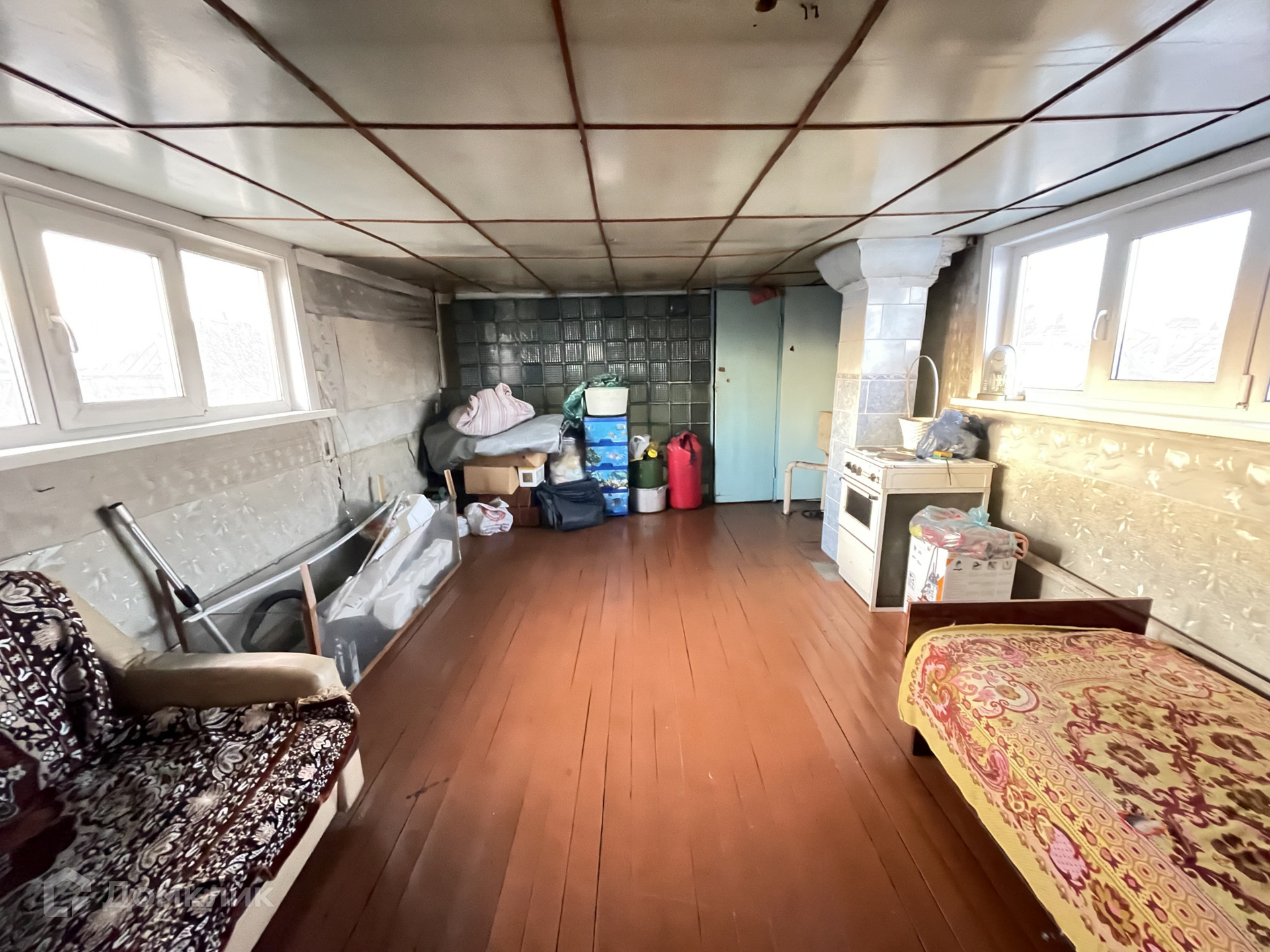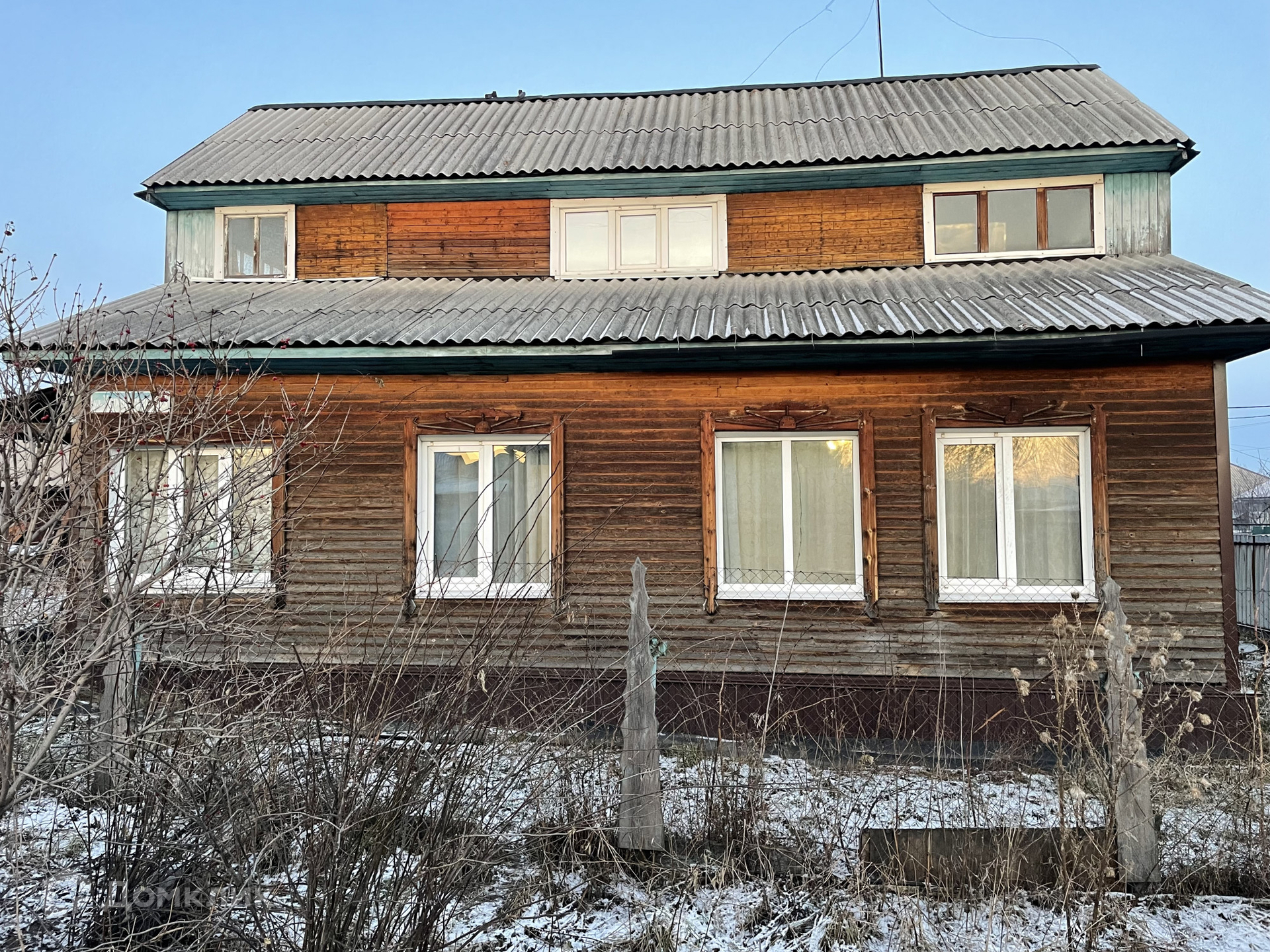 • S=107,2 м², кухня - 12 м². Брусовой дом, теплый и сухой, 1989 года постройки. Большая мансарда на втором этаже. Косметический ремонт. Окна ПВХ. Полы - дощатые, частично линолеум. Потолки - потолочная плитка, частично пластиковые панели. Санузел в доме. Водяное отопление от печи.