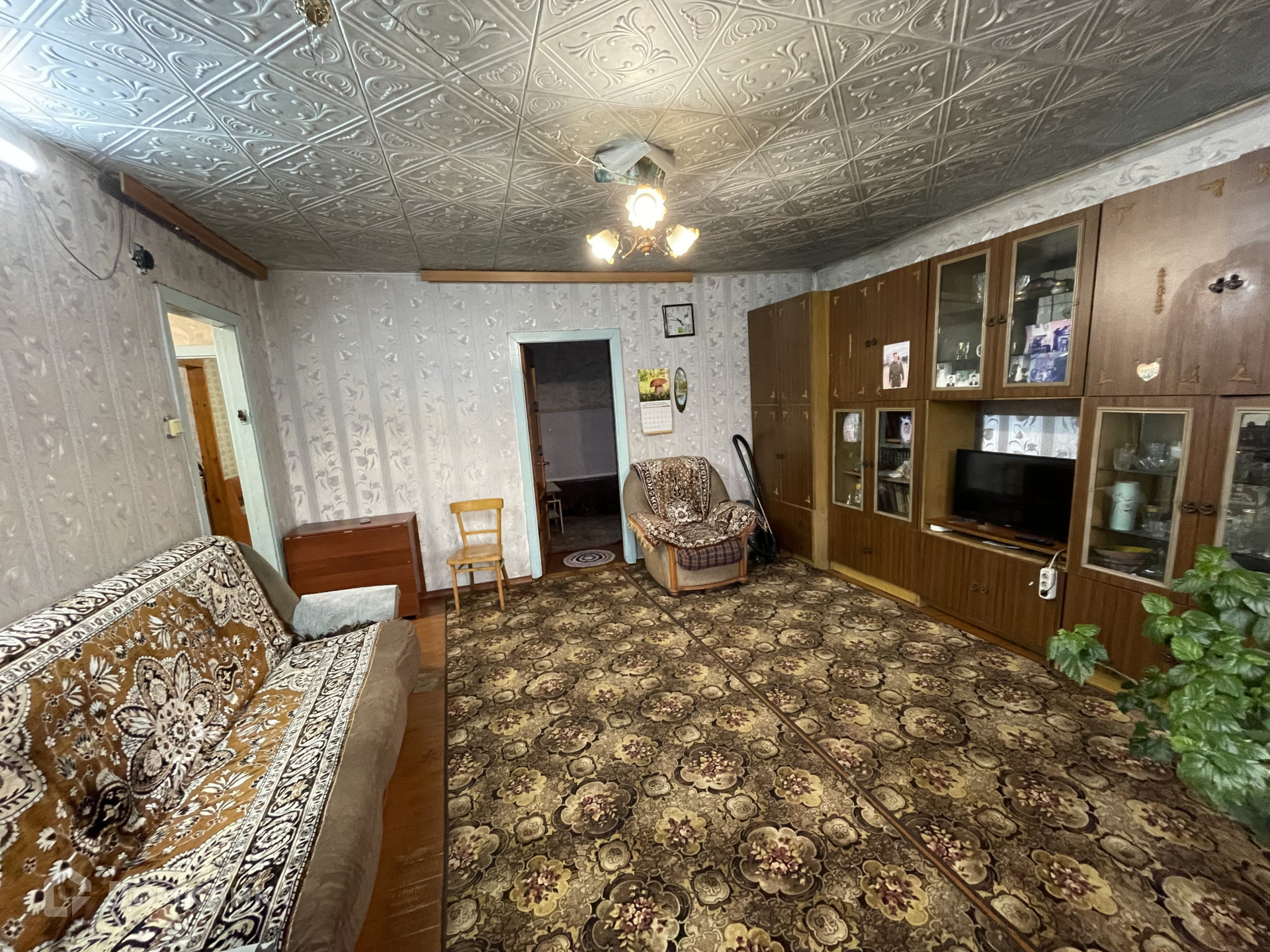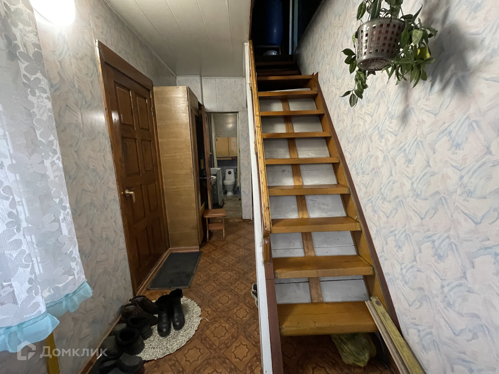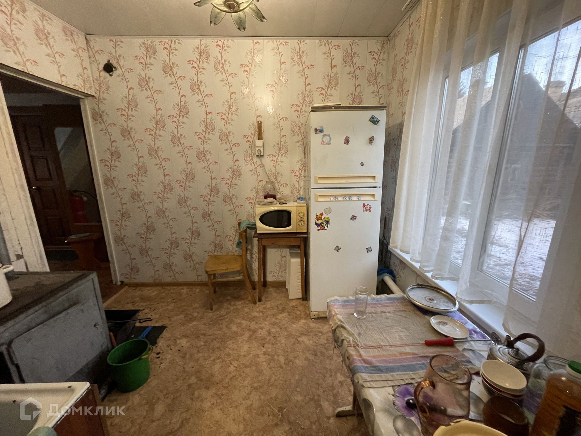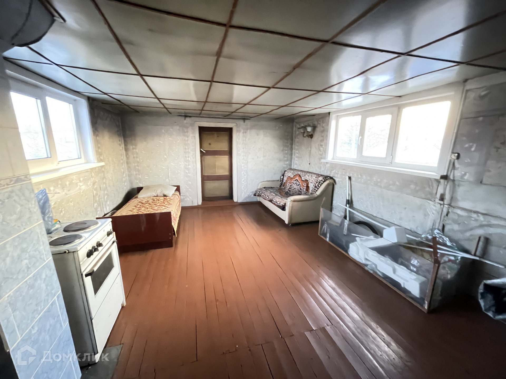 • S=107,2 м², кухня - 12 м². Брусовой дом, теплый и сухой, 1989 года постройки. Большая мансарда на втором этаже. Косметический ремонт. Окна ПВХ. Полы - дощатые, частично линолеум. Потолки - потолочная плитка, частично пластиковые панели. Санузел в доме. Водяное отопление от печи.
