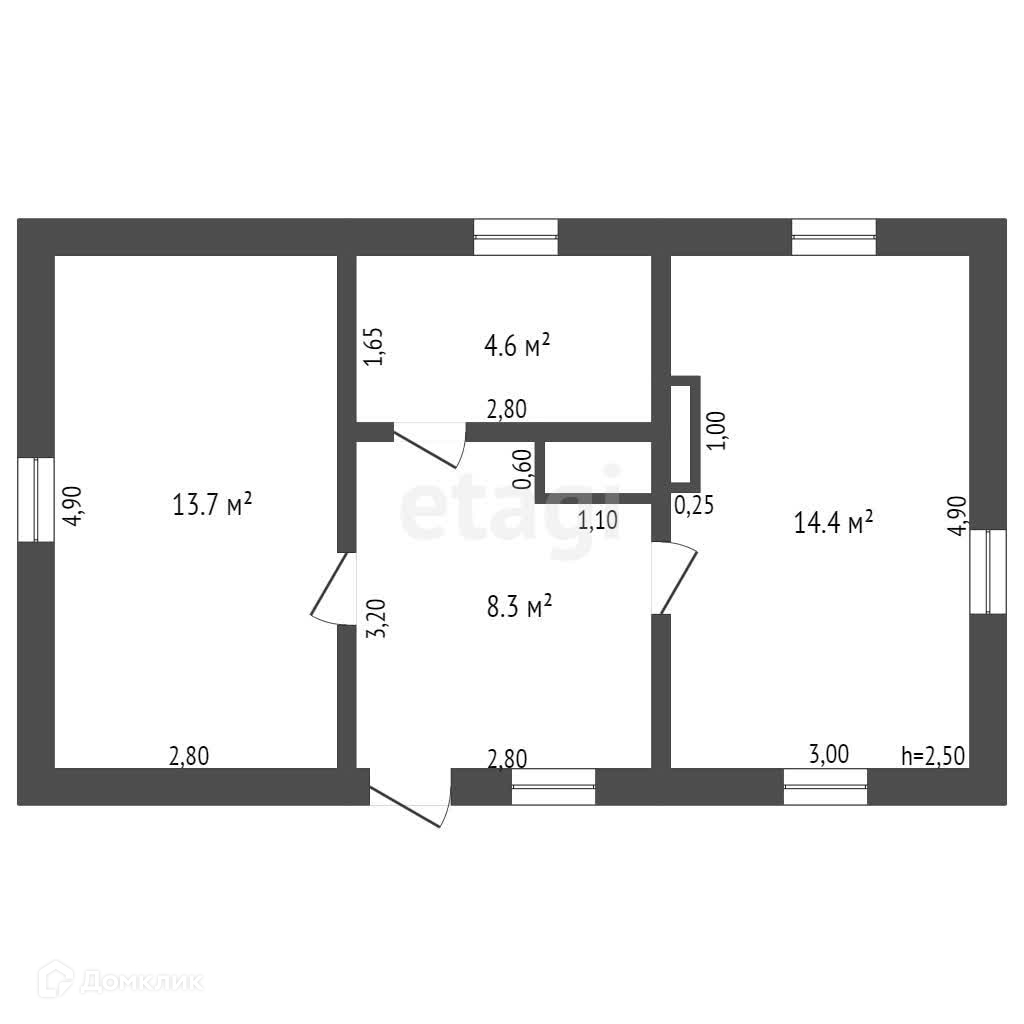 1-этажный дом, 41.1 м2, на продажу в Полысаево, Техническая улица, 64А