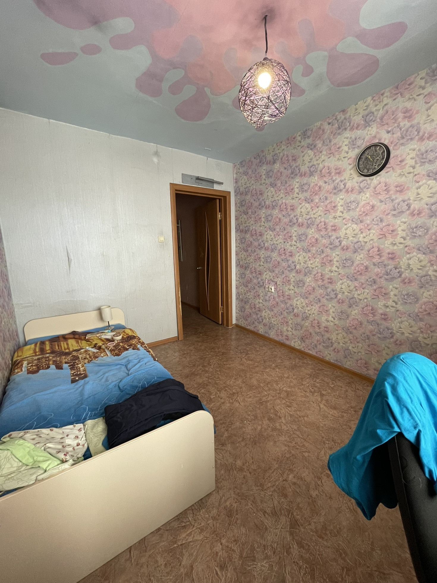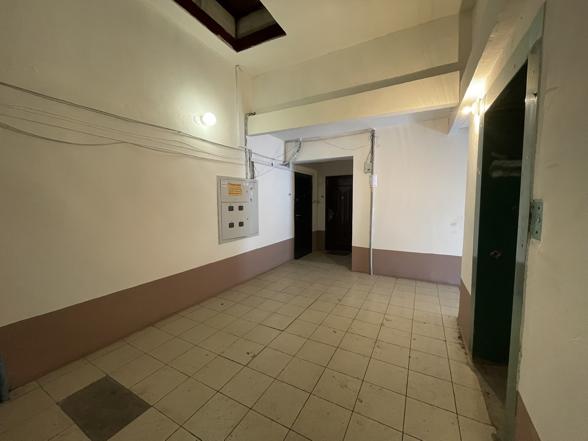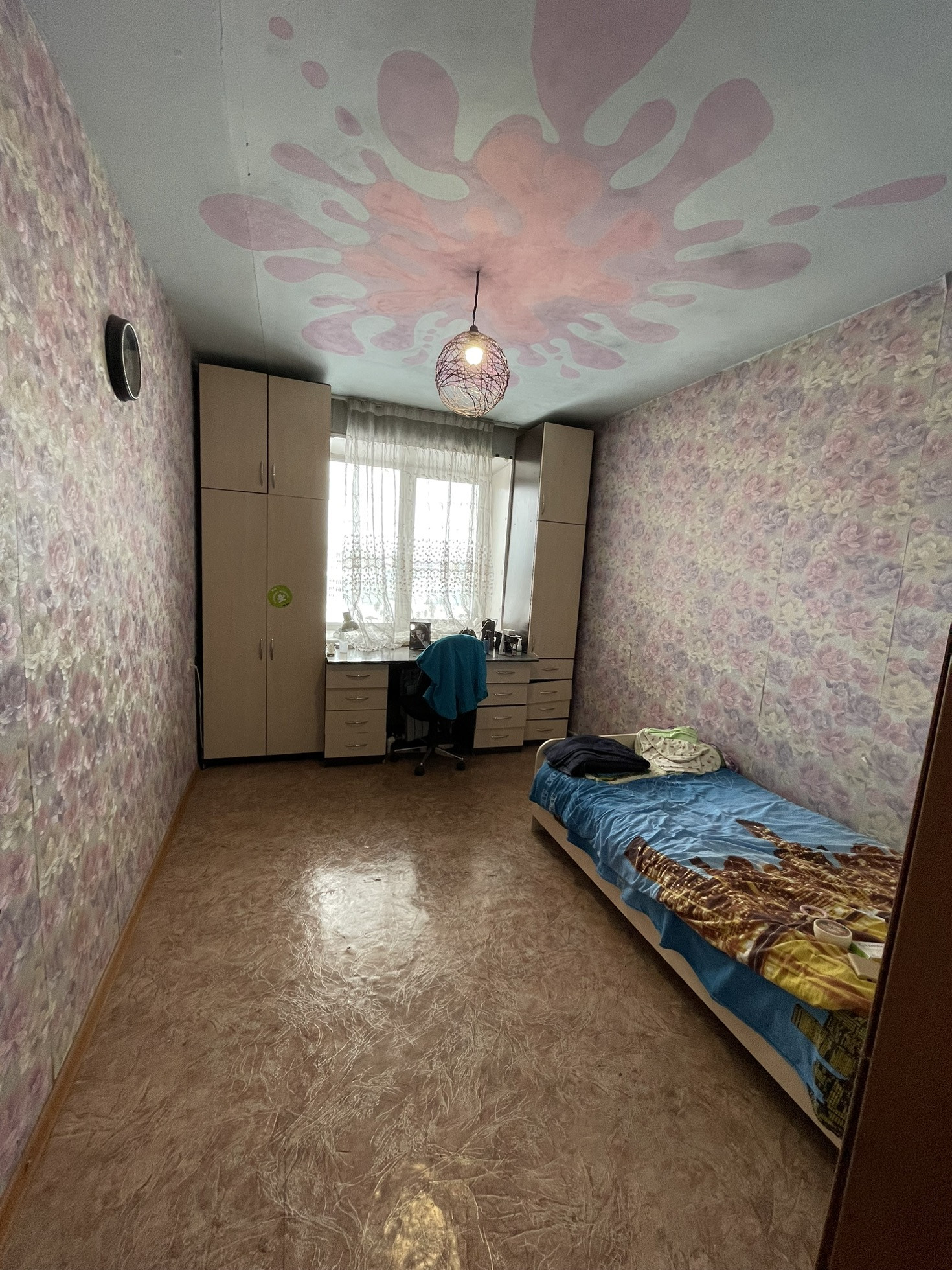 Стены ровные, пол железобетонный- линолеум, потолки ровные- покраска,