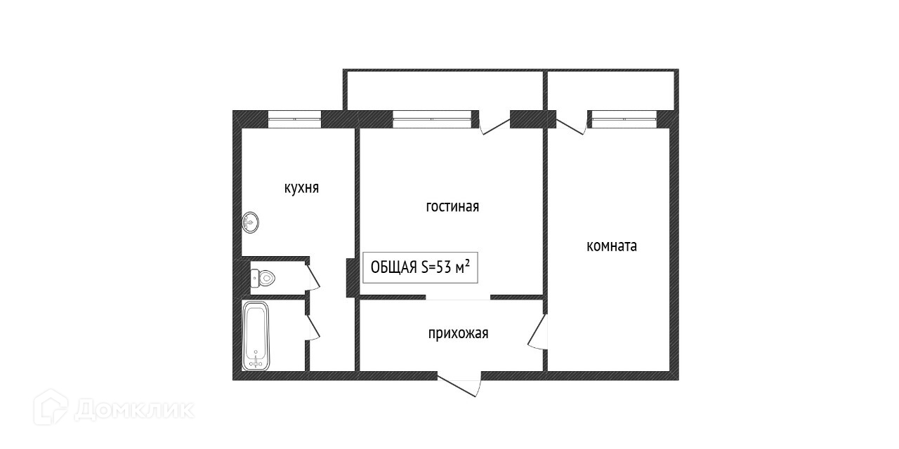 Общая площадь 54 м2