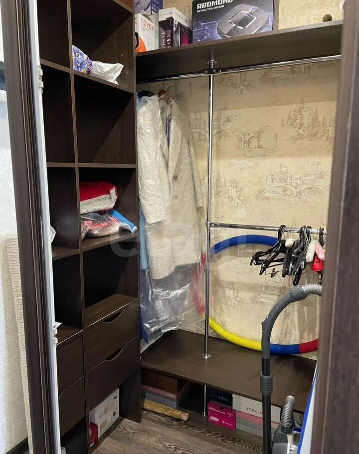 В подарок новым собственникам остается новый кухонный гарнитур, встроенная гардеробная и встроенный шкаф.
