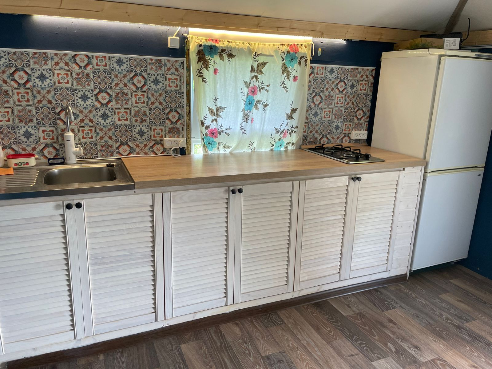 В доме есть горячая и холодная вода, электричество, кухня, газовая плита,холодильник, пластиковые окна.