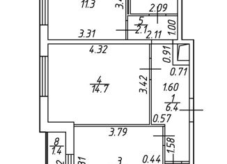 Общая площадь: 39.8 м2