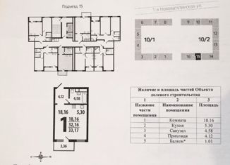 Квартира на продажу студия, 33.17 м2, 1-я Нововатутинская улица, 3