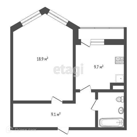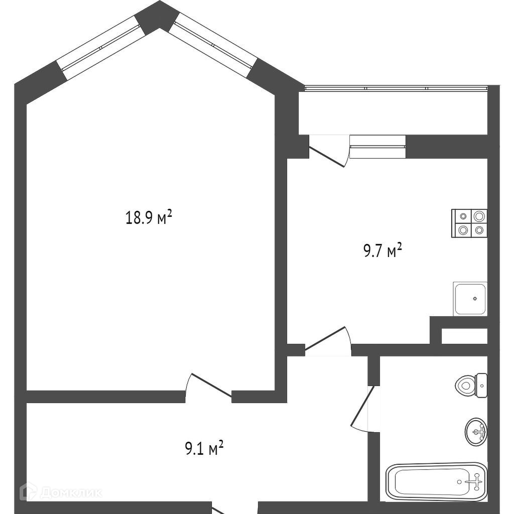 Общая площадь 42.3 м2
