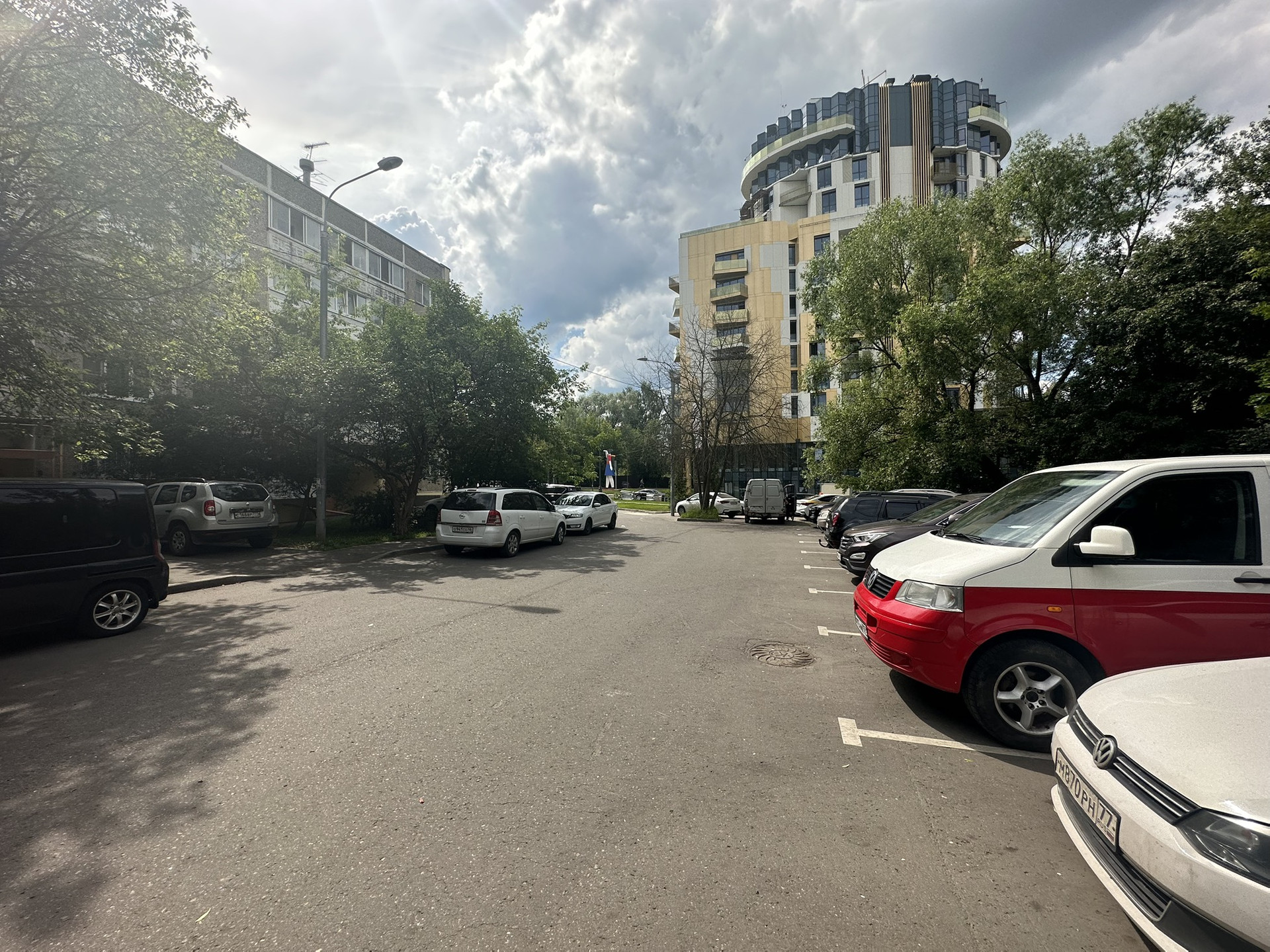 Большая парковка прямо перед домом.