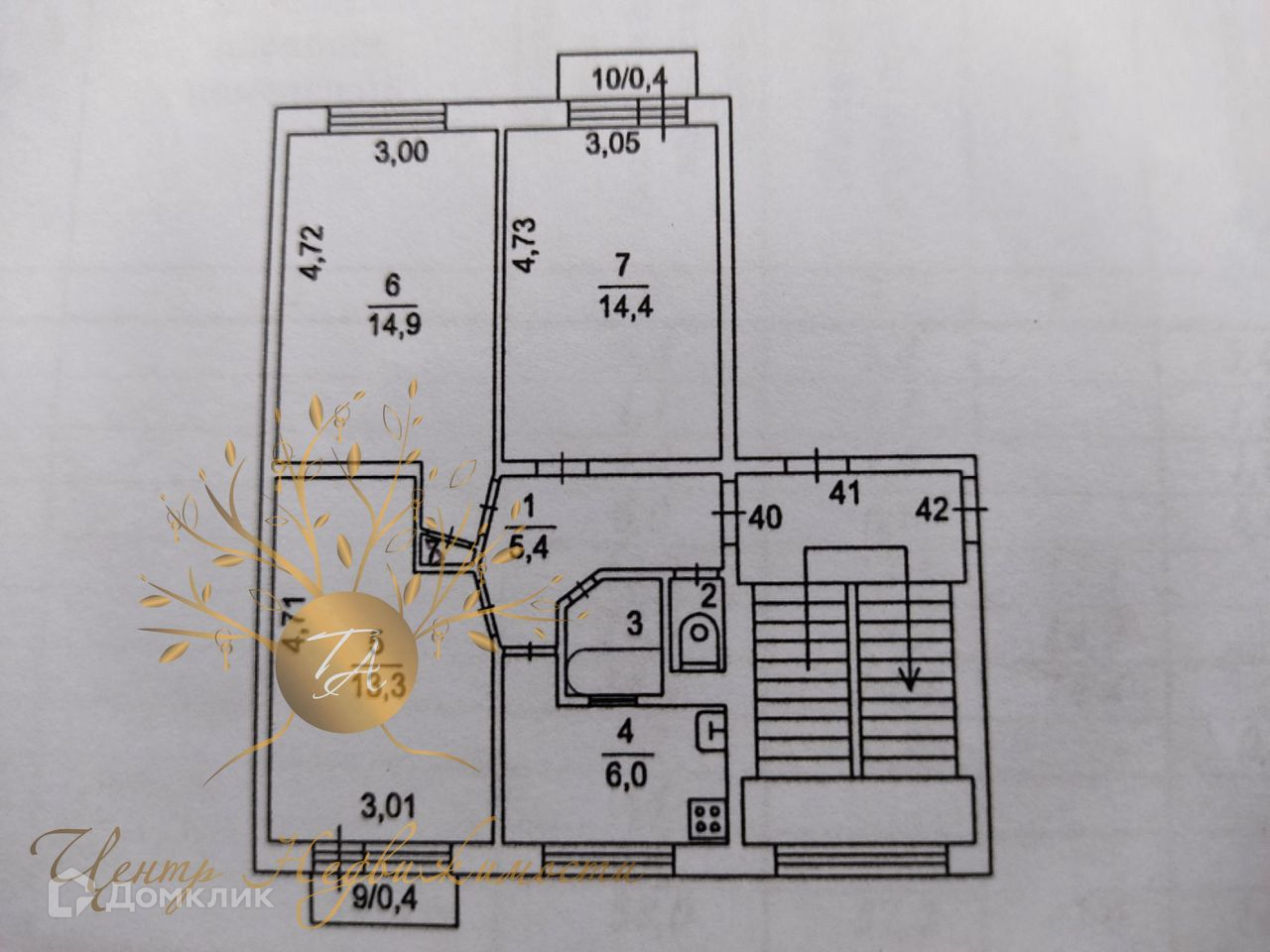 Жилая площадь 42.6 м2