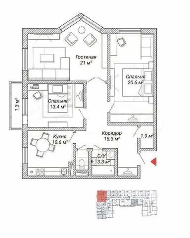 Общая площадь 86.8 м2