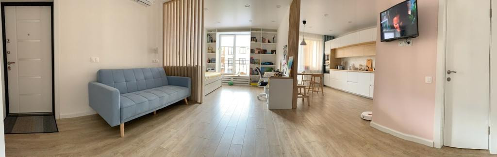 Капитальный дизайнерский ремонт 2019 года: стяжка пола, электропроводка, э/щиток в квартире, шумоизоляция, сейф дверь Torex с повышенной шумоизоляцией, высокопрочный ламинат, итальянский керамогранит в ванной (тоже поглащает шум). В душевой тропический душ с термостатом и средний ручной. Установлены фильтры на вход горячей и холодной воды. Управляемая вытяжка Silent с датчиком влажности в ванной и подключаемая на кухне. Ванная комната обогревается тёплым полом Devi. Встроенная мебель (шкафы в квартире, ванной, на балконе), встроенная кухня и бытовая техника: стиральная машина Electrolux, холодильник Electrolux, посудомоечная машина Bosh, индукционная варочная поверхность Икея, кондиционер Hisense - на гарантии, встроенный духовой шкаф и микроволновая печь, скрытая вытяжка Elica - остается.