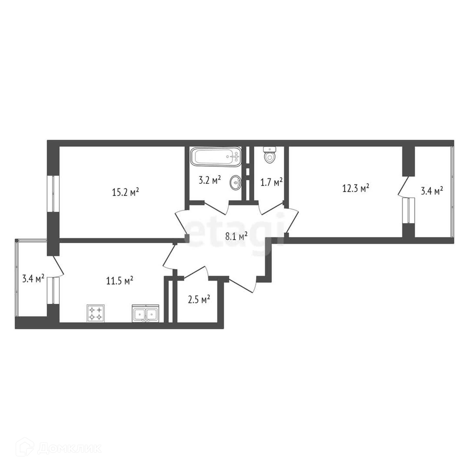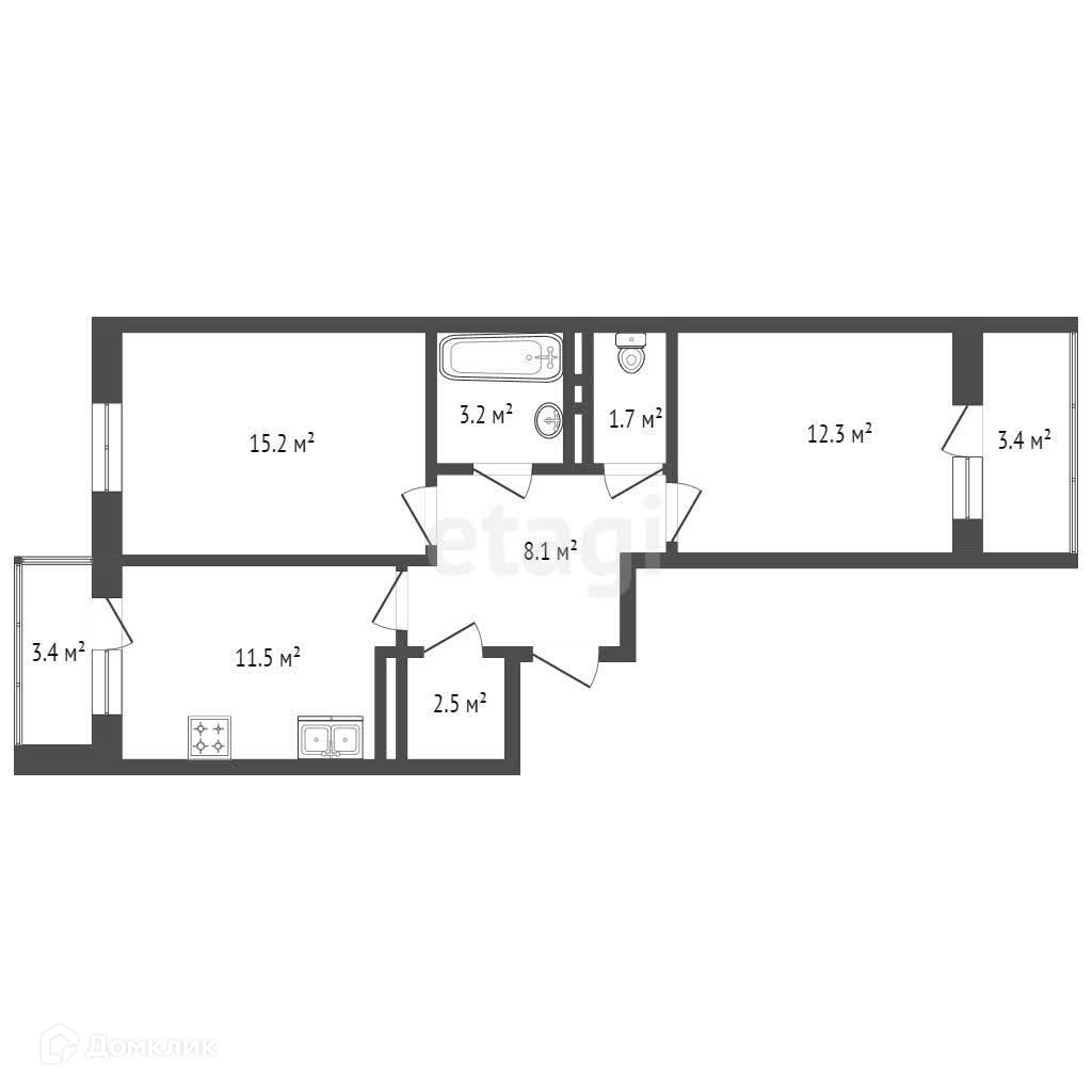 Общая площадь 54.1 м2