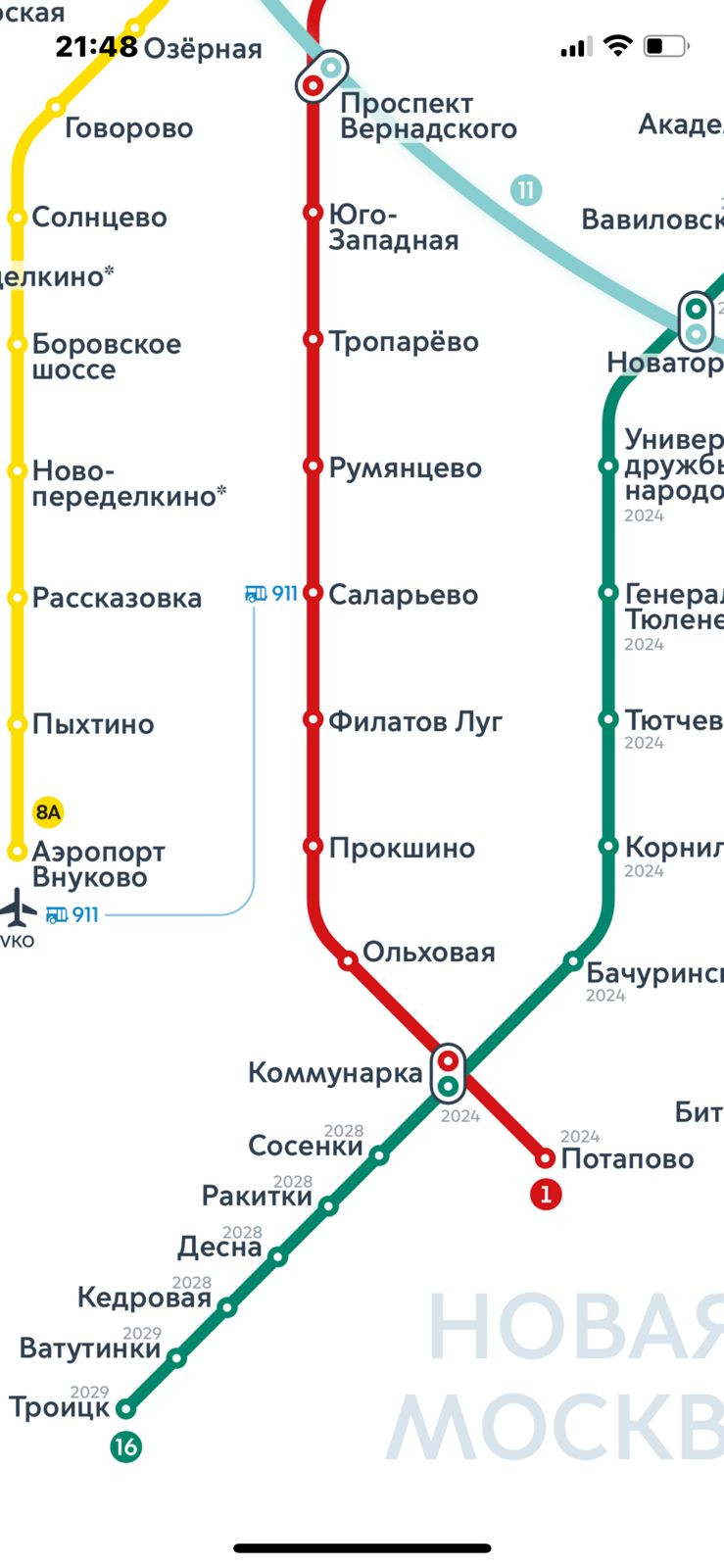 Московские автобусы до метро Саларьево, Ольховая, Коммунарка, Теплый  Стан 20-30 минут по Калужскому шоссе.