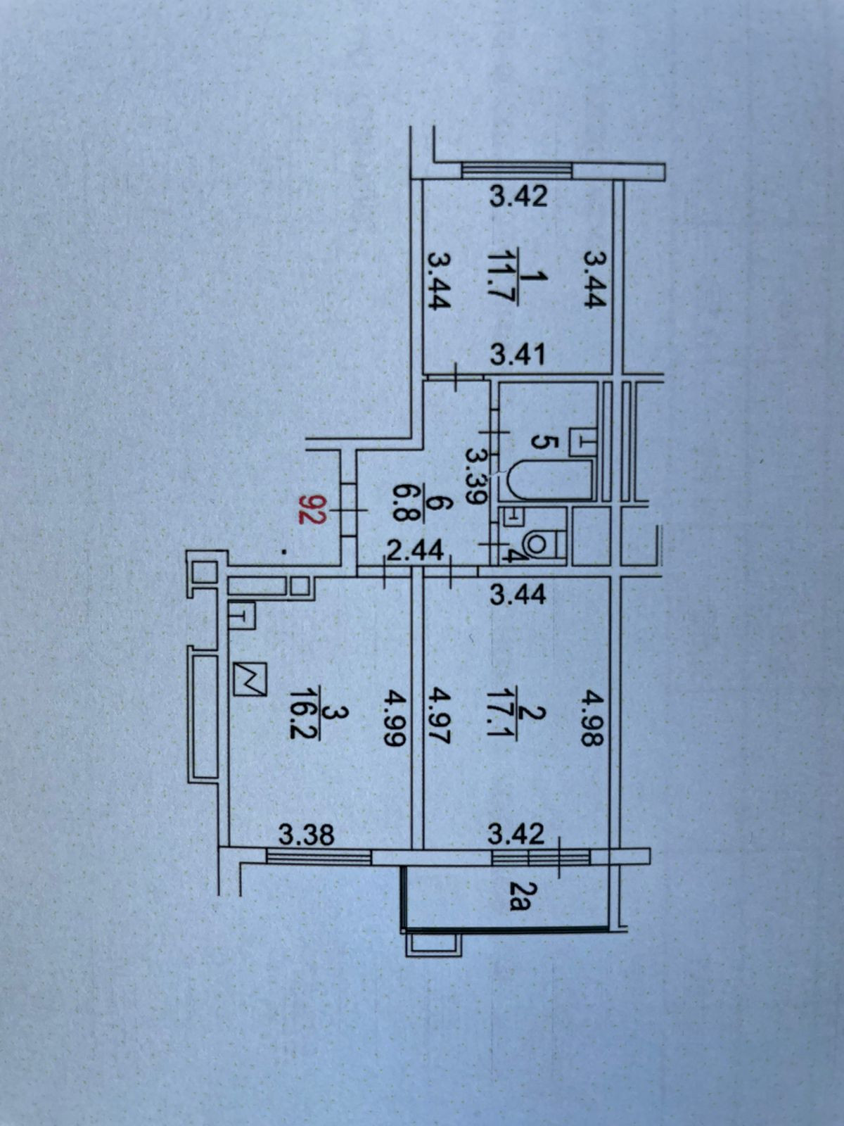 Общая площадь 57 м2