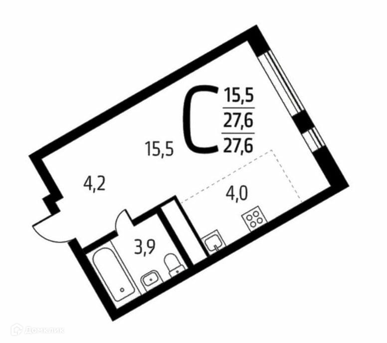 Общая площадь 27.6 м2