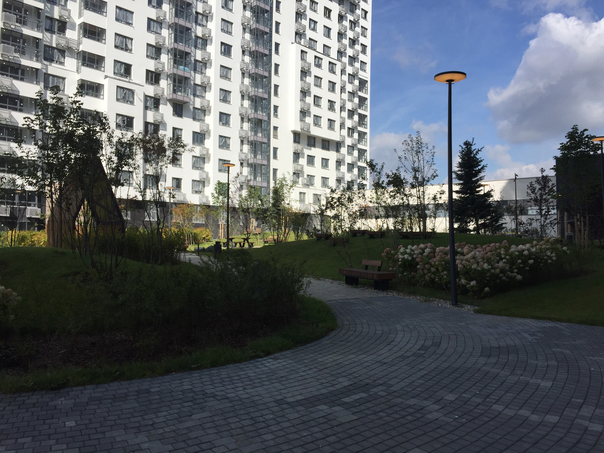 Благоустроенный двор с ландшафтным дизайном,  подземный паркинг, современные детские и спортплощадки. Коммерческие галереи на первых этажах, в которых  будут расположены аптеки, салоны, кафе и супермаркеты в формате « у дома» . Входная группа с высокими потолками , вход в подъезд со стороны улицы и двора.