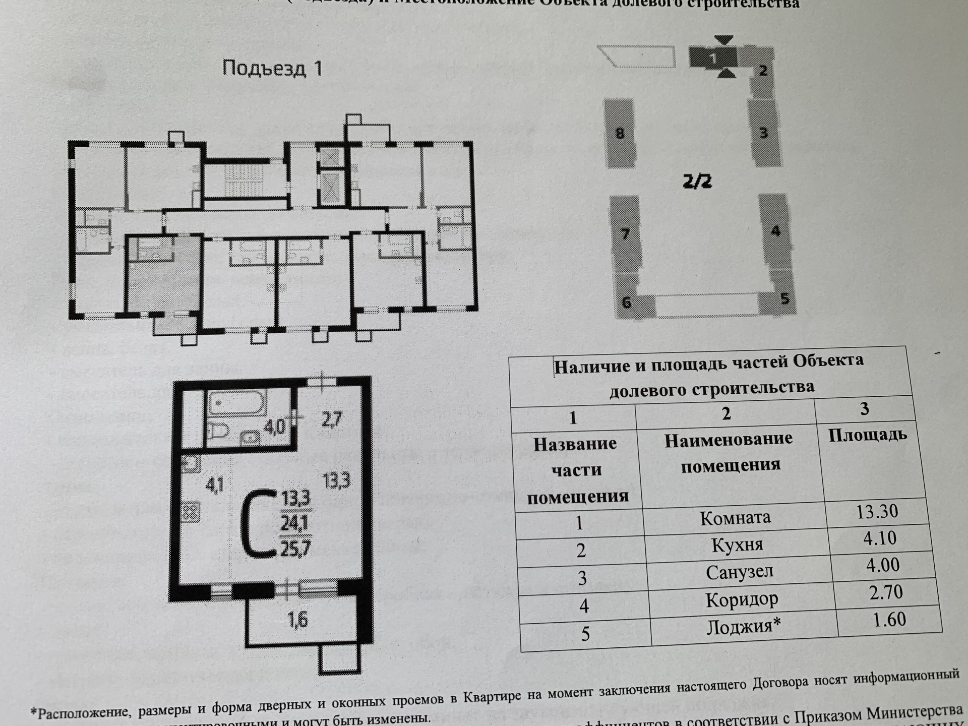 Общая площадь 25.7 м2
