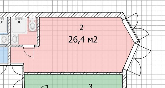 Общая площадь 26.4 м2