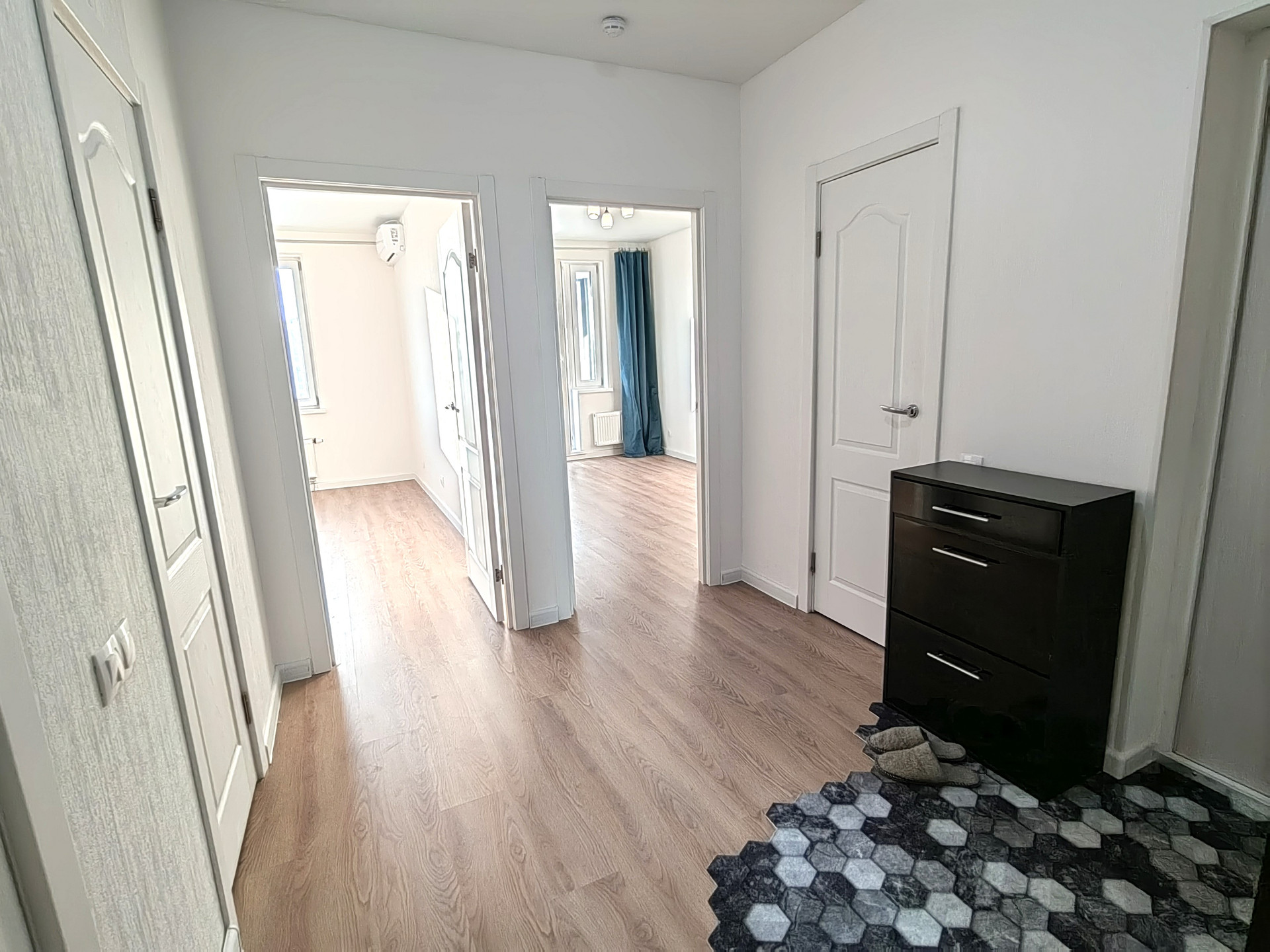 Продаётся светлая и уютная двухкомнатная квартира евро-формата: кухня-гостиная и две изолированные спальни.