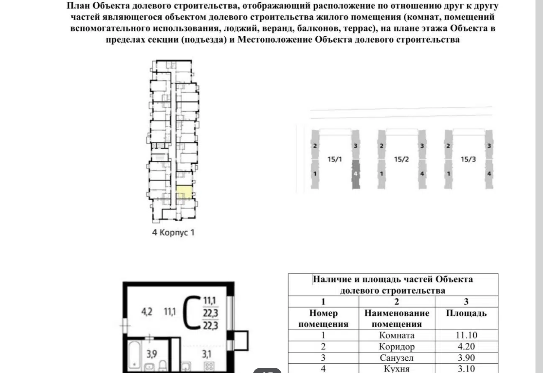 Общая площадь 22.3 м2